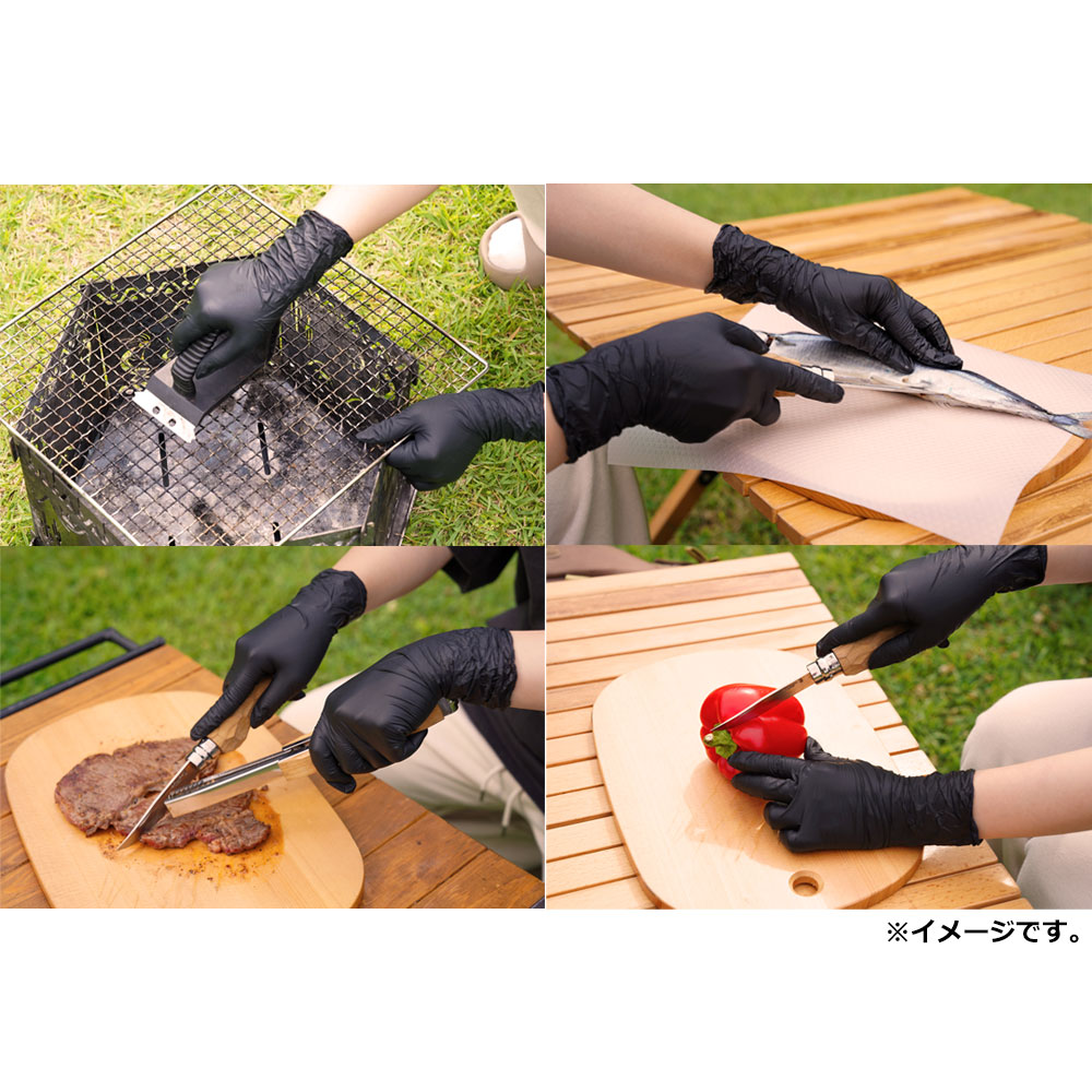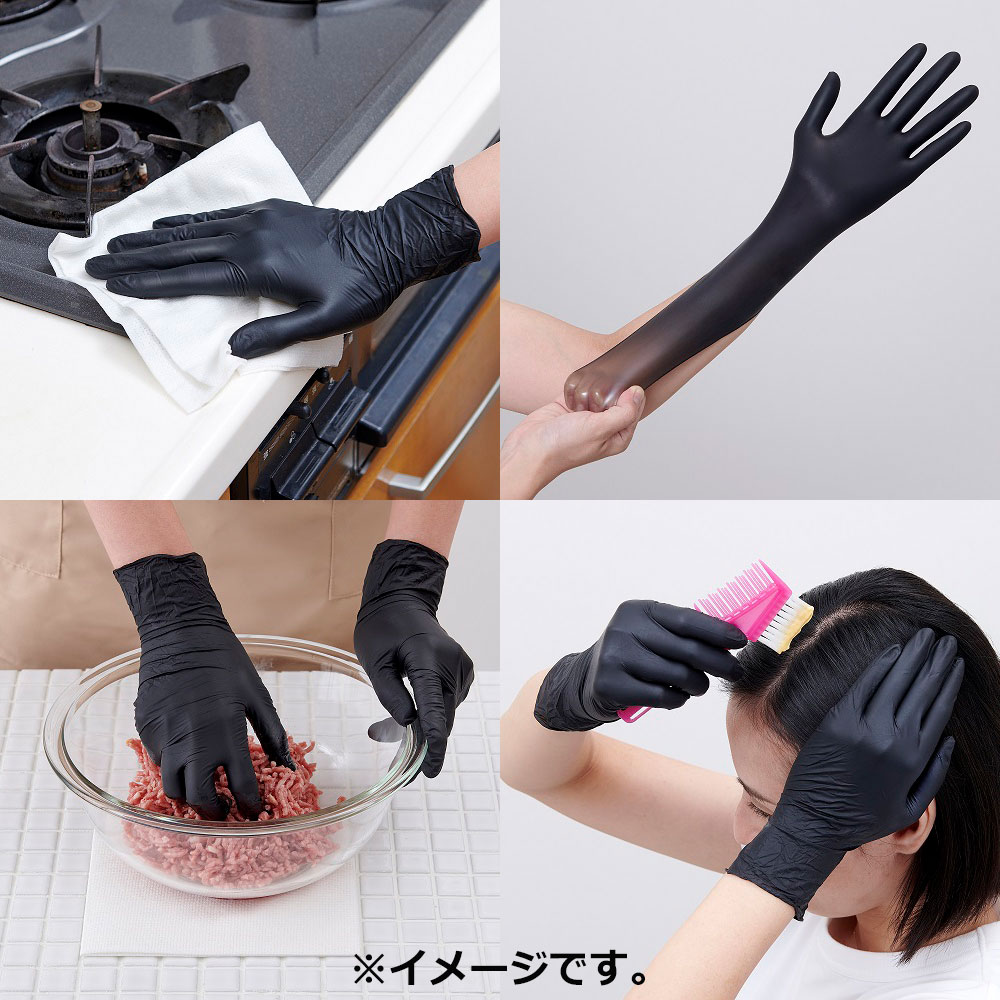 | 素材 | 【仕様】 粉なし・左右兼用タイプ 【材質】 ニトリルゴム 包装材:紙 【サイズ】 ★共通 ・全長:約240mm以上 ・指先厚さ:約0.05mm以上 ・掌部厚さ:約0.05mm以上 ★掌部幅 ・Sサイズ:80±10mm ・Mサイズ:95±10mm ・Lサイズ:110±10mm 【色】 Noir |