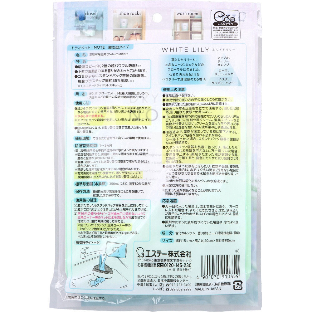 ドライペット NOTE 置き型タイプ ホワイトリリー 吸湿量350mL 1個入