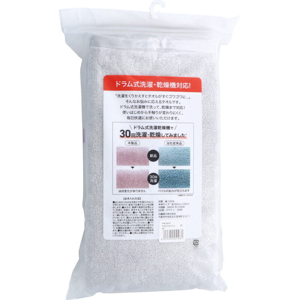 素材 | 【TTK12010】 【材質】 綿100% 【本体サイズ】 約60×120cm 【お手入れ方法】 ・はじめのうちは毛羽落ちや色落ちすることがありますので、単独で洗濯することをお勧めします。 ・水や汗、摩擦や直射日光等により、色落ち、色移り、変色することがありますのでご注意ください。 ・白い物、淡い色の物と一緒に洗わないでください。長時間水に浸けて置いたり、濡れたまま他の物と重ねておくと、色移りする恐れがありますので、洗濯後等はすぐに形を整えて干してください。 ・パイルが他のものと引っかかる恐れがありますので、洗濯時は洗濯ネットのご使用をお勧めします。 ・蛍光漂白剤入り洗剤、漂白剤は使用しないでください。 ・火気には絶対近づけないでください。 |
