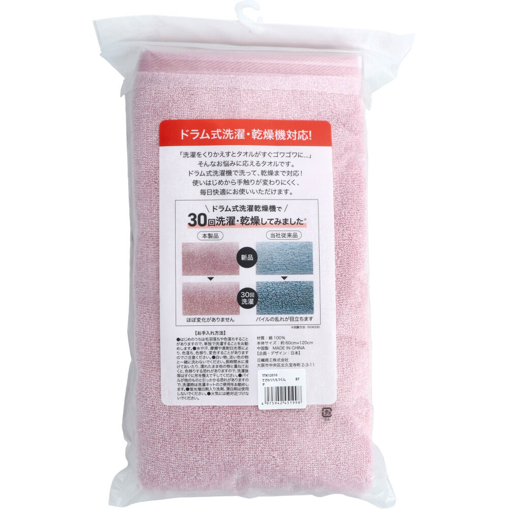 素材 | 【TTK12010】 【材質】 綿100% 【本体サイズ】 約60×120cm 【お手入れ方法】 ・はじめのうちは毛羽落ちや色落ちすることがありますので、単独で洗濯することをお勧めします。 ・水や汗、摩擦や直射日光等により、色落ち、色移り、変色することがありますのでご注意ください。 ・白い物、淡い色の物と一緒に洗わないでください。長時間水に浸けて置いたり、濡れたまま他の物と重ねておくと、色移りする恐れがありますので、洗濯後等はすぐに形を整えて干してください。 ・パイルが他のものと引っかかる恐れがありますので、洗濯時は洗濯ネットのご使用をお勧めします。 ・蛍光漂白剤入り洗剤、漂白剤は使用しないでください。 ・火気には絶対近づけないでください。 |