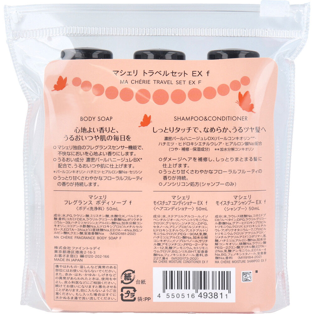 | 素材 | 【化粧品】 【セット内容】 ・フレグランス ボディソープ 50mL ・モイスチュア シャンプー 50mL ・モイスチュア コンディショナー 50mL 【成分】 ★ボディソープ 水、PG、ラウリン酸、ミリスチン酸、水酸化K、パルミチン酸、香料、コカミドDEA、ラウリルグリコール酢酸Na、ポリクオタニウム-39、ハチミツ、セリシン、ヒアルロン酸Na、加水分解コンキオリン、ココアンホ酢酸Na、ヒドロキシプロピルメチルセルロース、EDTA-3Na、ピロ亜硫酸Na,、EDTA-4Na、BG、ソルビン酸K、クエン酸、安息香酸Na ★シャンプー 水、ラウレス硫酸Na、コカミドプロピルベタイン、DPG、ラウリルグリコール酢酸Na、グアーヒドロキシプロビルトリモニウムクロリド、ヒドロキシエチルウレア、ポリクオタニウム-7、(プロピルトリモニウムクロリドアクリルアミド/ジメチルアクリルアミド)コポリマー、乳酸、ハチミツ、ヒアルロン酸Na、加水分解コンキオリン、硫酸Na、ラウリン酸PEG-2、クエン酸、サリチル酸、EDTA-2Na、乳酸アンモニウム、EDTA-4Na、BG、フェノキシエタノール、安息香酸Na、香料 ★コンディショナー 水、ステアリルアルコール、イソペンチルジオール、ベヘントリモニウムクロリド、グリセリン、ジメチコン、DPG、セタノール、アミノプロピルジメチコン、ヒドロキシエチルウレア、ステアルトリモニウムクロリド、PEG-90M、乳酸、ハチミツ、ヒアルロン酸Na、加水分解コンキオリン、イソプロパノール、サリチル酸、アモジメチコン、PPG-2-デセス-12、乳酸アンモニウム、セトリモニウムクロリド、BG、シリカ、BHT、安息香酸Na、フェノキシエタノール、香料、赤227、黄4  |