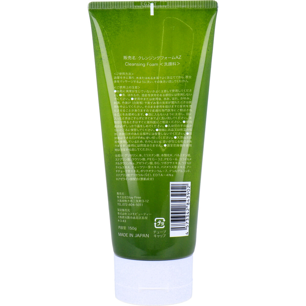 素材 | 【化粧品】 販売名:クレンジングフォームAZ 【全成分】 水、グリセリン、ミリスチン酸、水酸化K、パルミチン酸、ステアリン酸、ラウリン酸、PEG-32、PEG-6、ココイルメチルタウリンNa、アゼライン酸、BG、ツボクサエキス、ワイルドタイムエキス、ティーツリー葉エキス、ハマメリス葉エキス、アーチチョーク葉エキス、ポリクオタニウム-7、デシルグルコシド、ステアリン酸グリセリル(SE)、EDTA-4Na 【ご使用方法】 ・適量を手に取り、水またはぬるま湯でよく泡立ててから、顔全体をマッサージするように洗い、その後洗い流してください。 |