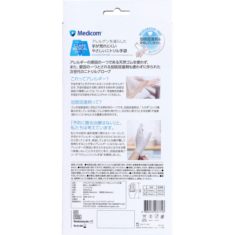 クラスメディカル 手が荒れにくい やさしいニトリル手袋 ホワイト Mサイズ 50枚入