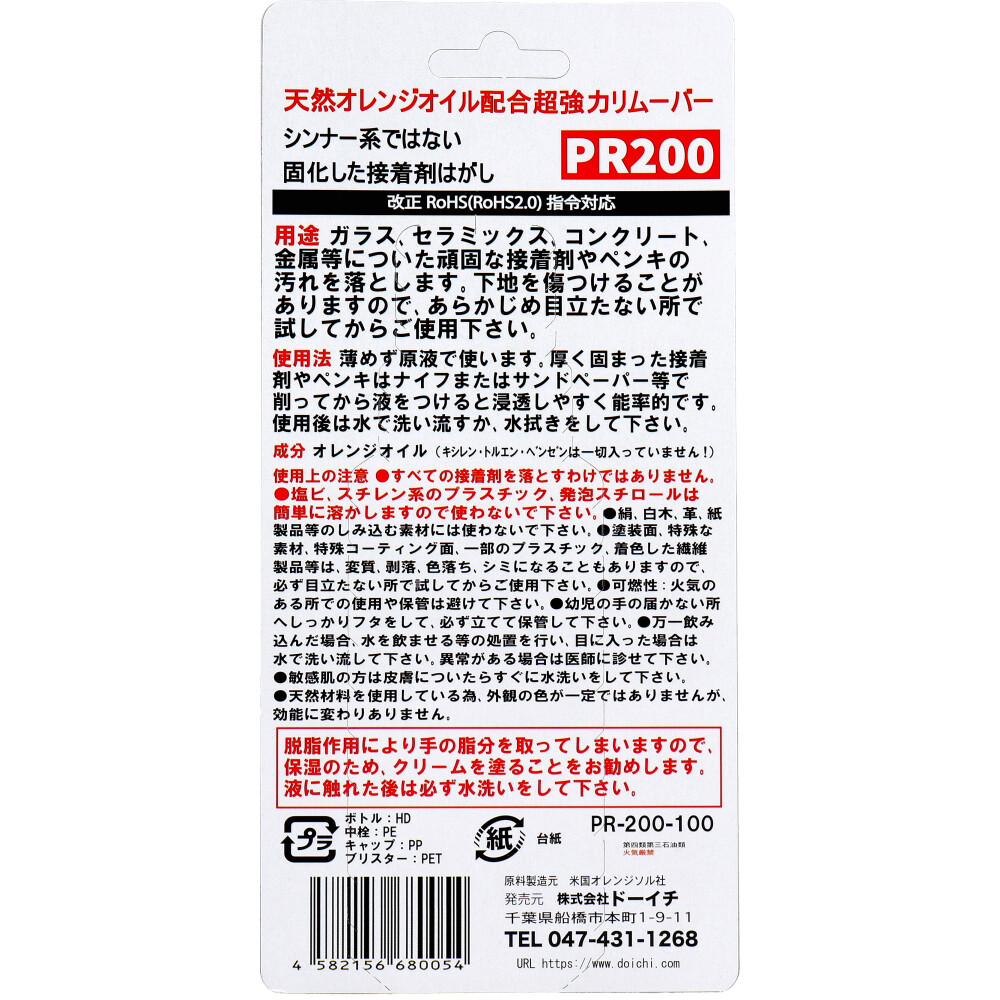 固化した接着剤剥がし ハード 超強力リムーバー PR200 スポイトタイプ 100mL