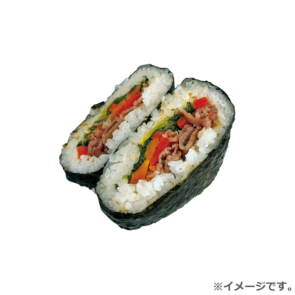 ●海苔で巻く場合、海苔の上に四角おにぎりをポンと取り出して包みます。