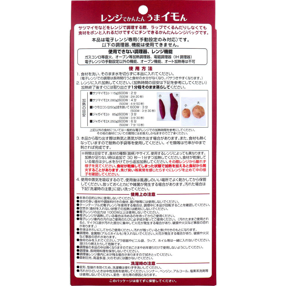 サツマイモなどをレンジで調理する際、ラップでくるんだりしなくても食材をポンと入れるだけですぐにチンできるかんたんレンジバッグです。