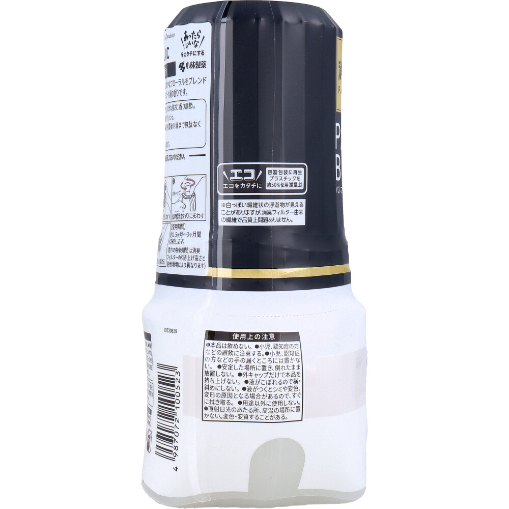 注意事項 | 【使用上の注意】 ・本品は飲めない。 ・小児、認知症の方などの誤飲に注意する。 ・小児、認知症の方などの手の届くところには置かない。 ・安定した場所に置き、倒れたまま放置しない。 ・外キャップだけで本品を持ち上げない。 ・液がこぼれるので横・斜めにしない。 ・液がつくとシミや変色、変形の原因となる場合があるので、すぐに拭き取る。 ・用途以外に使用しない。 ・直射日光のあたる所、高温の場所に置かない。変色・変質することがある。 ・誤飲に注意。 【応急処置】 ・液体が目に入った場合は、すぐに流水で洗い流す。 ・消臭フィルターの調節時や分別廃棄の際、液体が手についた場合はよく洗う。 ・飲んだ場合は、吐かせずにコップ1~2杯の水を飲ませる。 ・気分が悪くなったときは、使用を中止する。 ・異常がある場合は本品を持参し、医師に相談する。 |