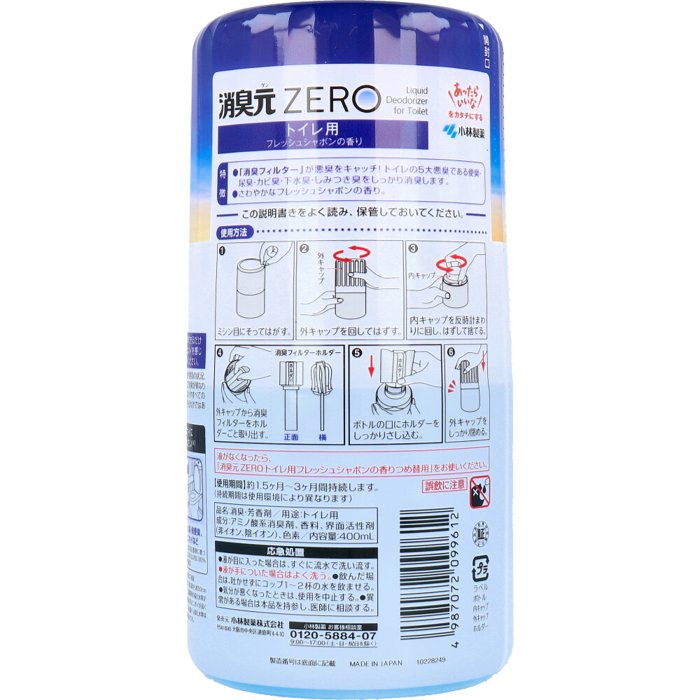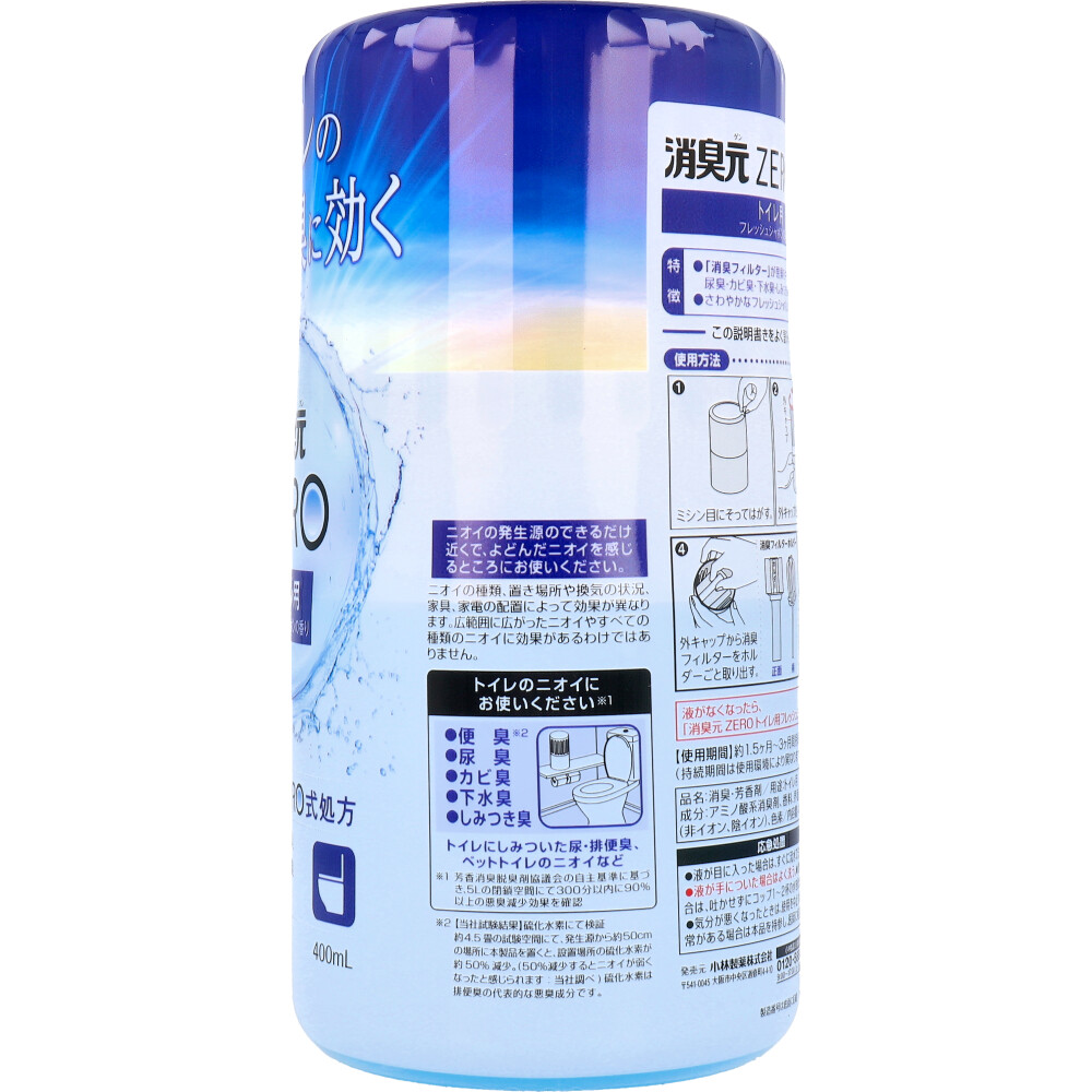 消臭元 ZERO(ゼロ) トイレ用 フレッシュシャボンの香り 400mL