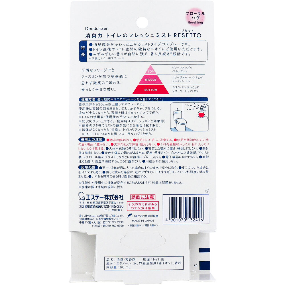 消臭力 トイレのフレッシュミスト RESETTO フローラルハグ 60mL