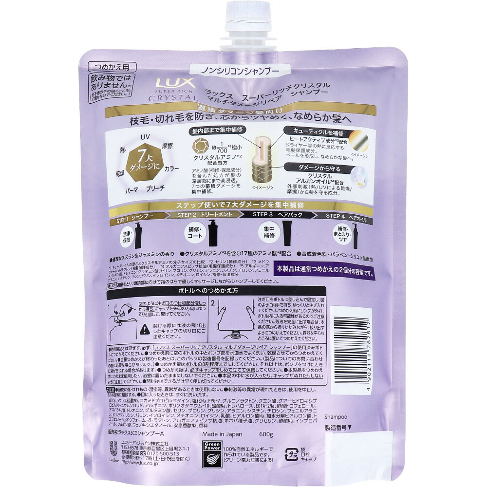 ラックス スーパーリッチクリスタル マルチダメージリペア シャンプー 詰替用 600g