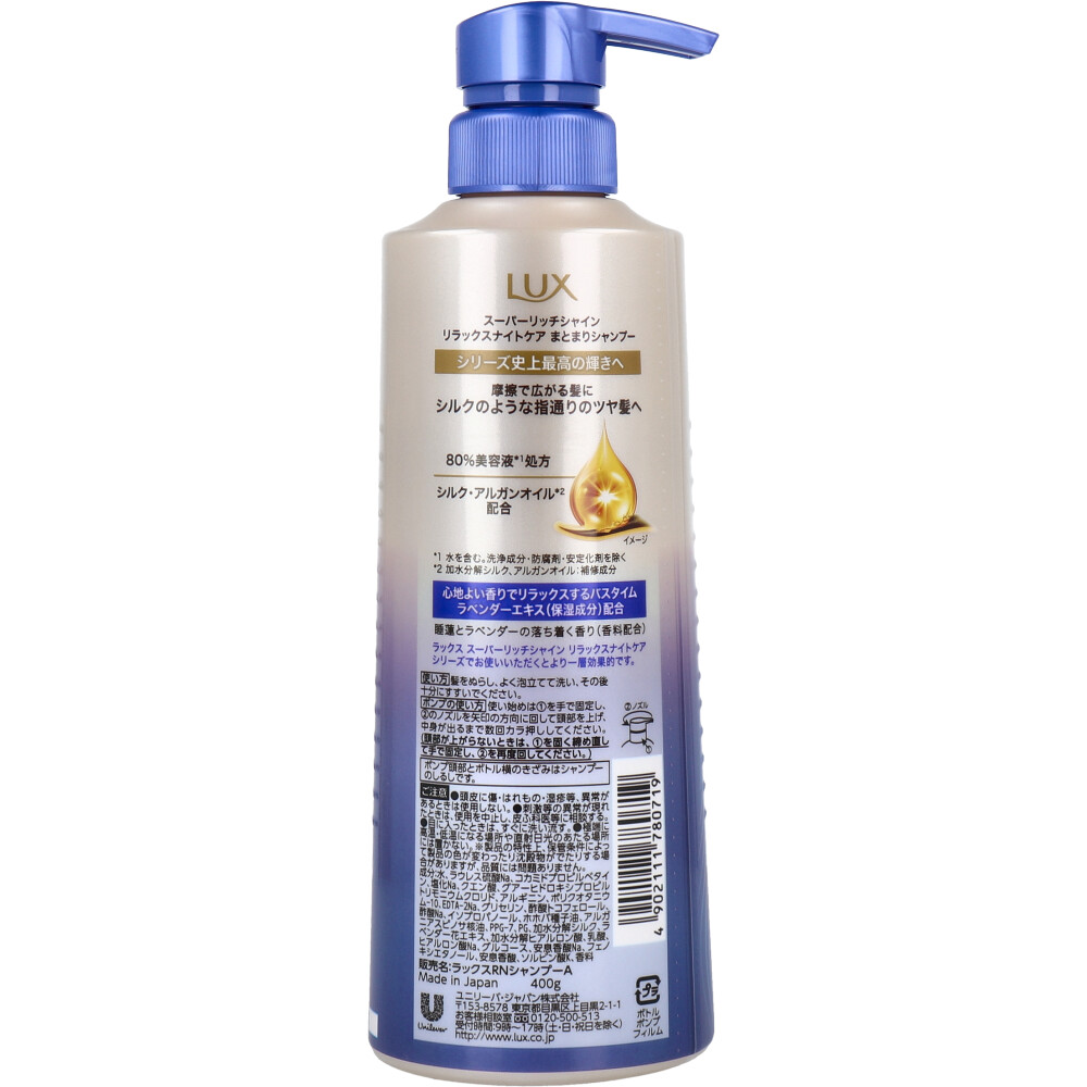 ラックス スーパーリッチシャイン リラックスナイトケア まとまりシャンプー 400g