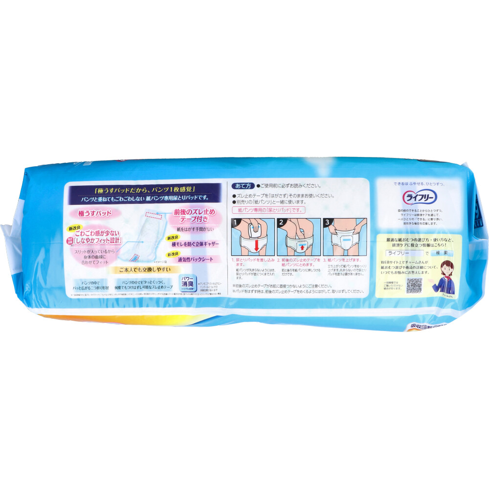 ライフリー ズレずに安心 極うすパッド うす型紙パンツ専用尿とりパッド 2回吸収 男女共用 68枚入