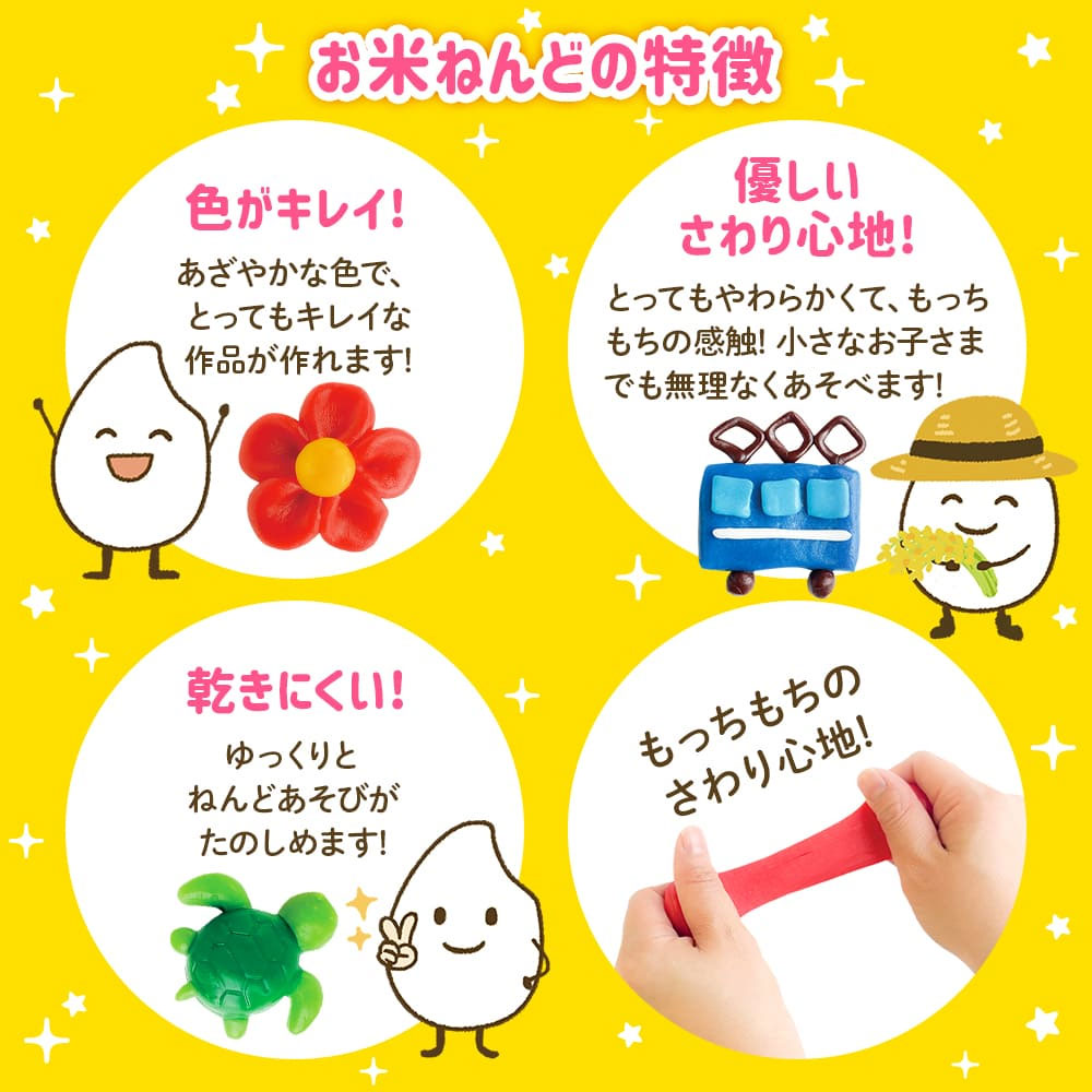 | 素材 | 【対象年齢】 3歳以上 【素材】 米粉、水、塩、食用色素、保存料 【入っている色】 あか、あお、きいろ、みどり、しろ、ちゃ |