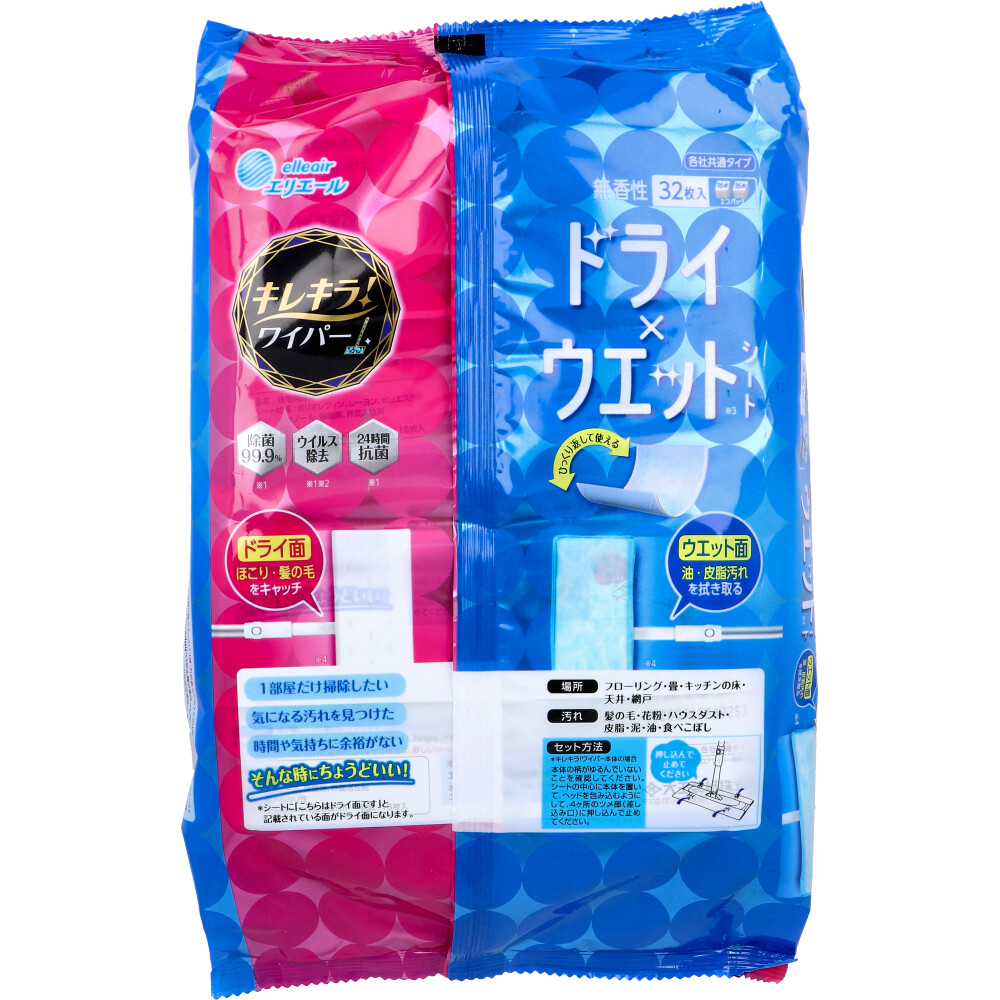 エリエール キレキラ! ワイパー ドライ×ウエットシート 各社共通タイプ 無香性 16枚入×2個パック