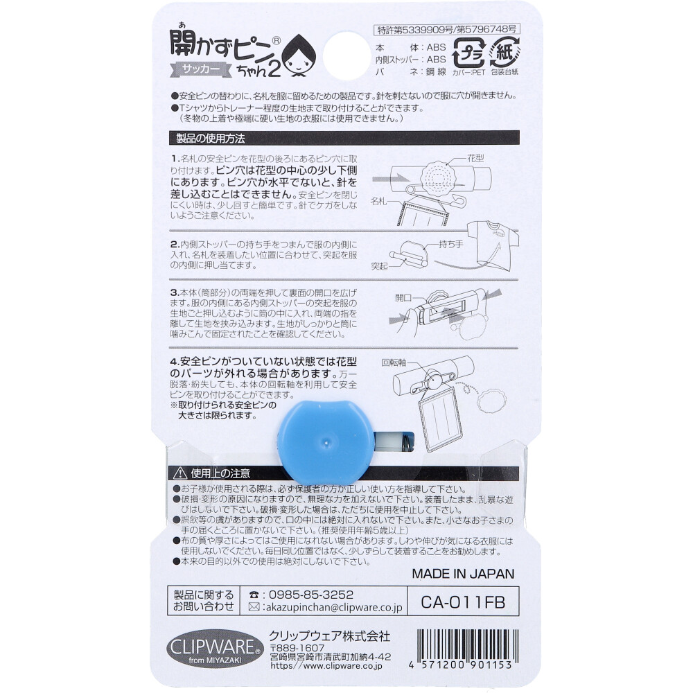 安全ピンの替わりに、名札を服に留めるための製品です。