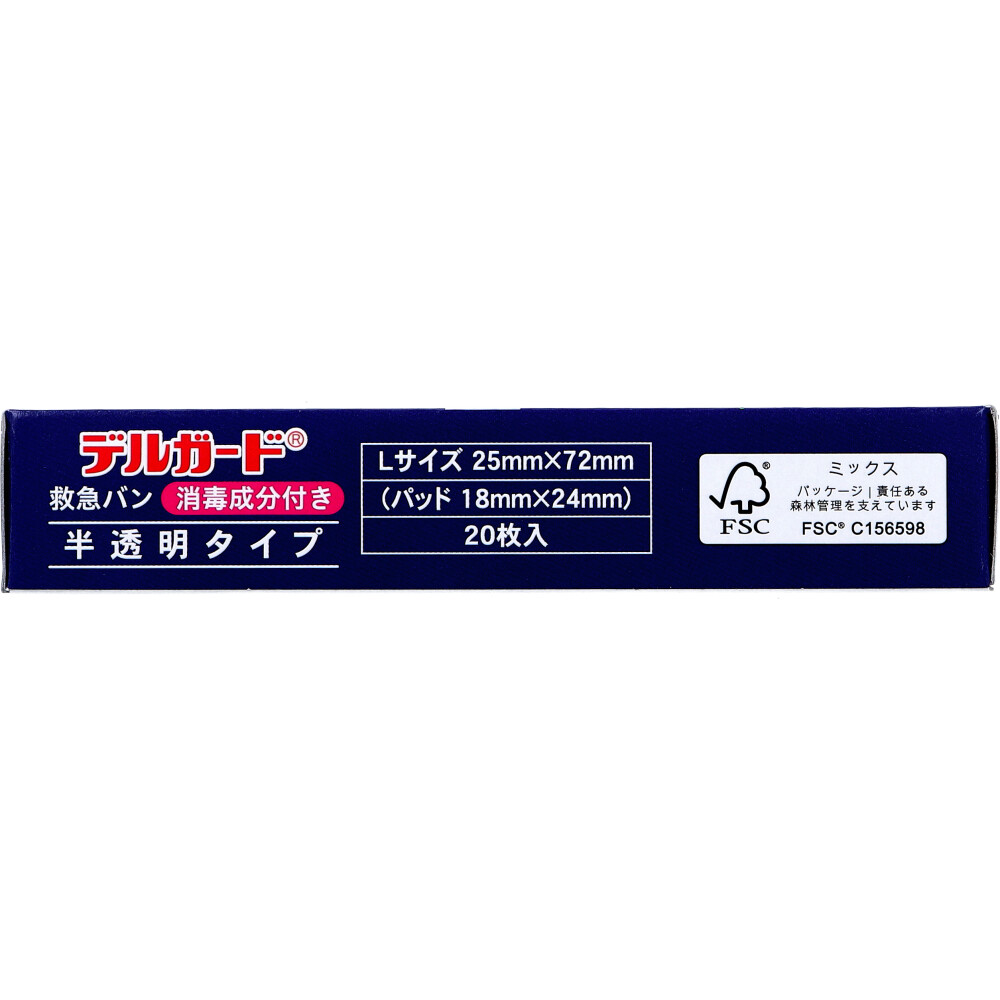 デルガード救急バン 消毒成分付き 半透明 Lサイズ 20枚
