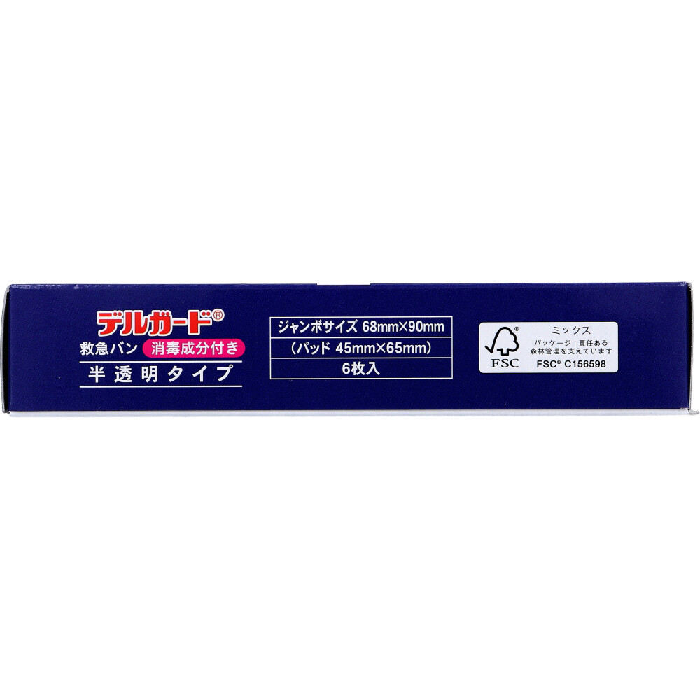 デルガード救急バン 消毒成分付き 半透明 ジャンボサイズ 6枚