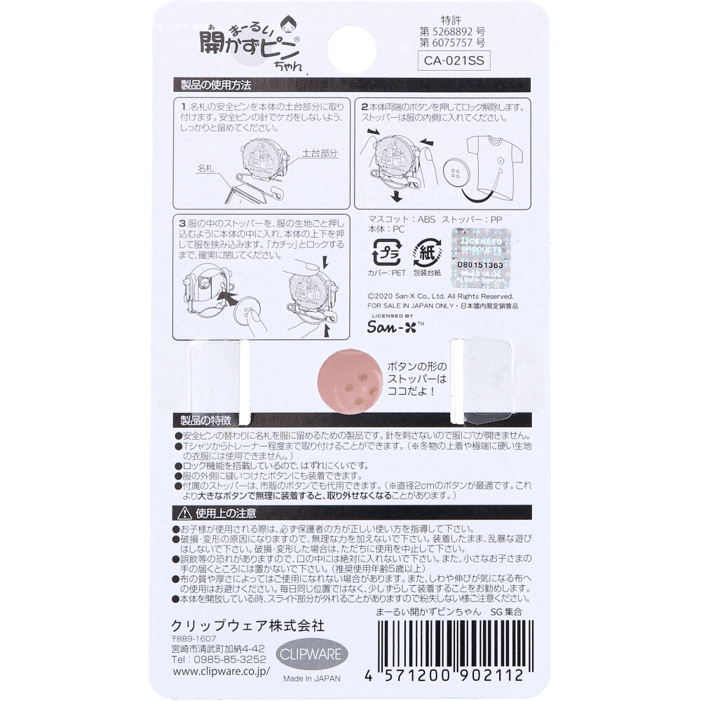 まーるい開かずピンちゃん すみっコぐらし 集合 名札用 CA-021SS