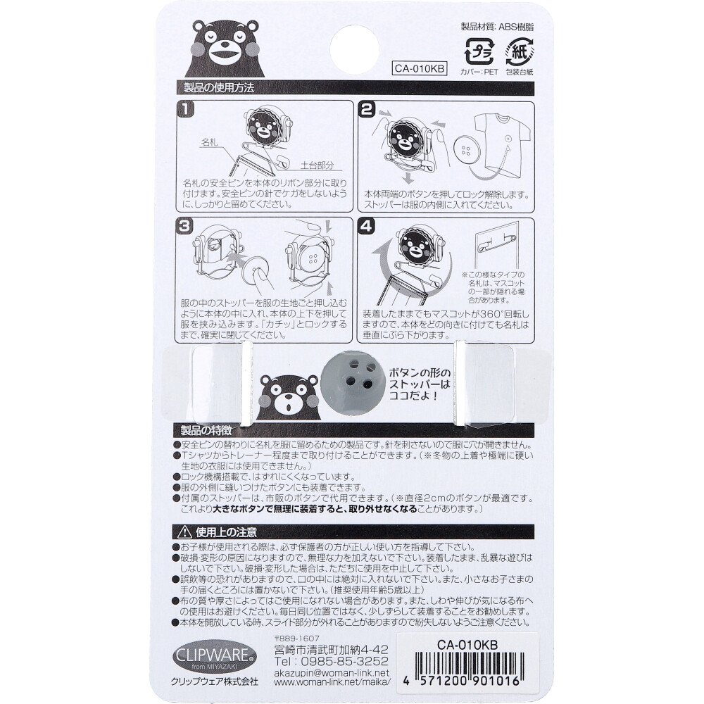 まーるい開かずピンちゃん くまモン 黒 名札用 CA-010KB