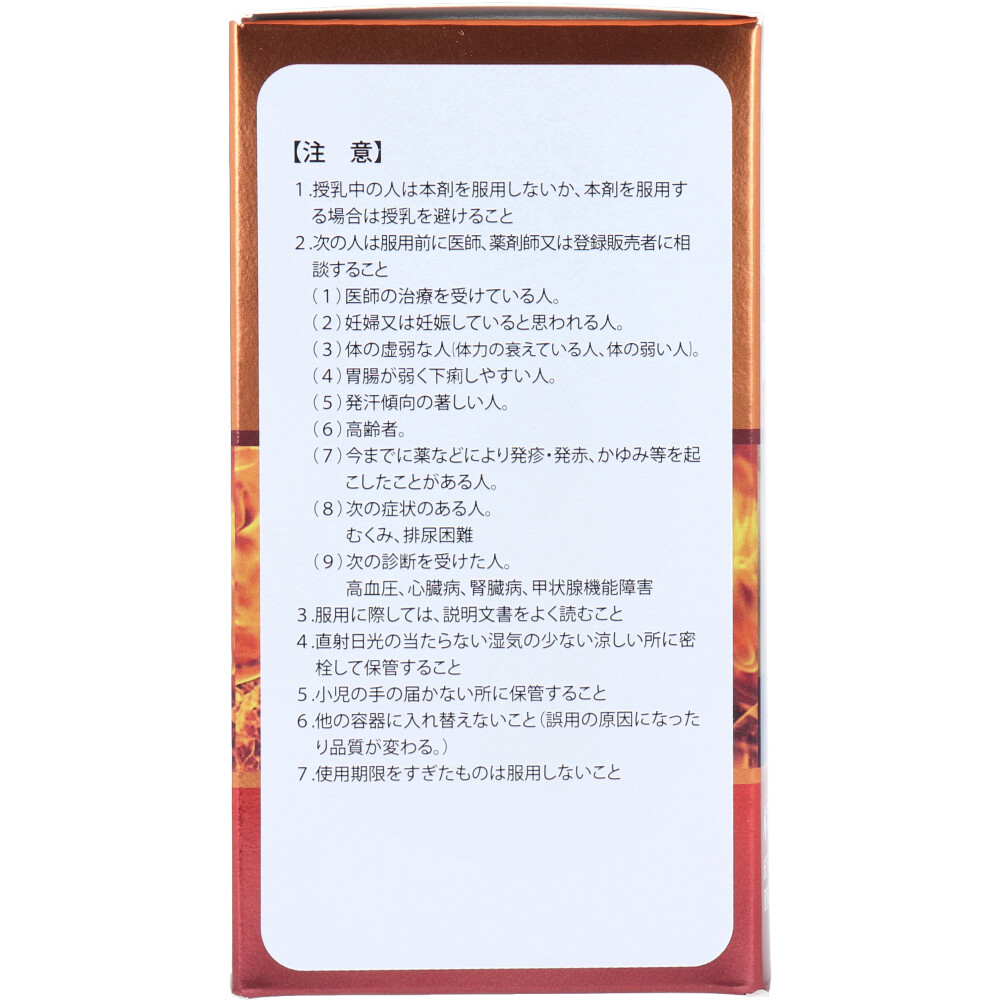 | 注意事項 | 【注意】 1.授乳中の人は本剤を服用しないか、本剤を服用する場合は授乳を避けること 2.次の人は服用前に医師、薬剤師又は登録販売者に相談すること (1)医師の治療を受けている人。 (2)妊婦又は妊娠していると思われる人。 (3)体の虚弱な人(体力の衰えている人、体の弱い人)。 (4)胃腸が弱く下痢しやすい人。 (5)発汗傾向の著しい人。 (6)高齢者。 (7)今までに薬などにより発疹・発赤、かゆみ等を起こしたことがある人。 (8)次の症状のある人。 むくみ、排尿困難 (9)次の診断を受けた人。 高血圧、心臓病、腎臓病、甲状腺機能障害 3.服用に際しては、説明文書をよく読むこと 4.直射日光の当たらない湿気の少ない涼しい所に密栓して保管すること 5.小児の手の届かない所に保管すること 6.他の容器に入れ替えないこと(誤用の原因になったり品質が変わる。) 7.使用期限をすぎたものは服用しないこと 【製造販売元】 本草製薬株式会社 名古屋市天白区古川町125番地 【お客様相談窓口】 電話:052-892-1287(代表) (午前9時~午後5時/土・日・祝日を除く) 副作用被害救済制度 電話:0120-149-931 【商品区分】 第2類医薬品 この商品は【第2類医薬品】です。 ・医薬品の販売免許証を弊社宛にFAXされていない販売店様には発送致しません。 ・販売免許証に記載の住所地にしか発送出来ません。 (顧客直送もできません。) 予めご了承ください。 |