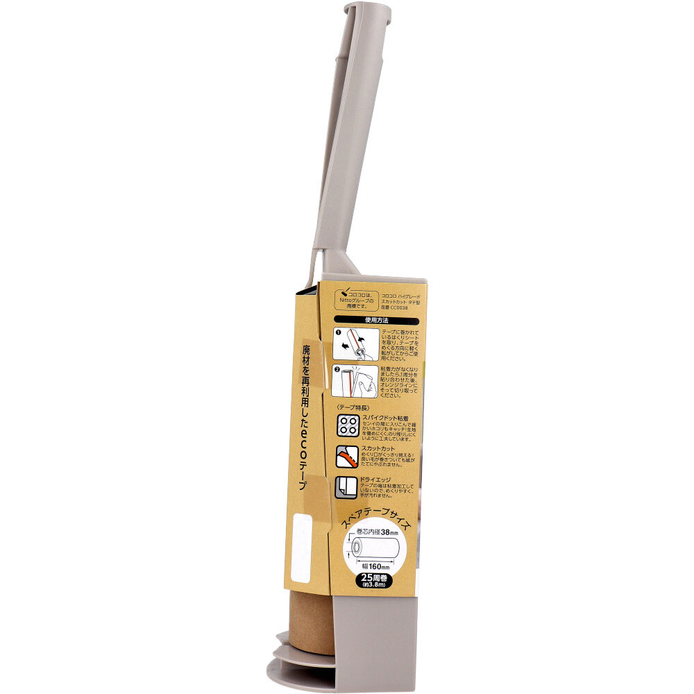 | 素材 | 【品番】 CC0038 【スペアテープサイズ】 幅160mm×25周巻(約3.8m) 巻芯内径:38mm 【材質】 本体・ケース:ポリプロピレン テープ 基材:紙 オレンジライン:ポリプロピレン 粘着剤:合成ゴム系 【使用方法】 (1)テープに巻かれているはくりシートを取り、テープをめくる方向に軽く転がしてからご使用ください。 (2)粘着力がなくなりましたら、1周分を貼り合わせた後、オレンジラインにそって切り取ってください。 【スペアテープの取りかえ方】 (1)使い終わったテープは、グリップのツメを押し込みグリップ側から抜き取ります。 (2)新しいテープをグリップ側から差し込んで、テープ受けにセットしてください。 ※使用中にテープが抜ける場合は、ツメを外側に起こしてください。 ※使用後は必ず専用の容器に入れて保管してください。 |