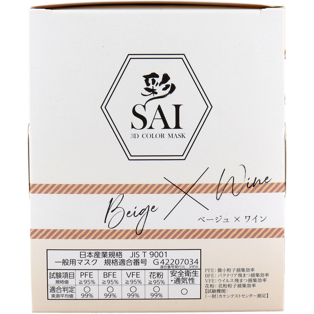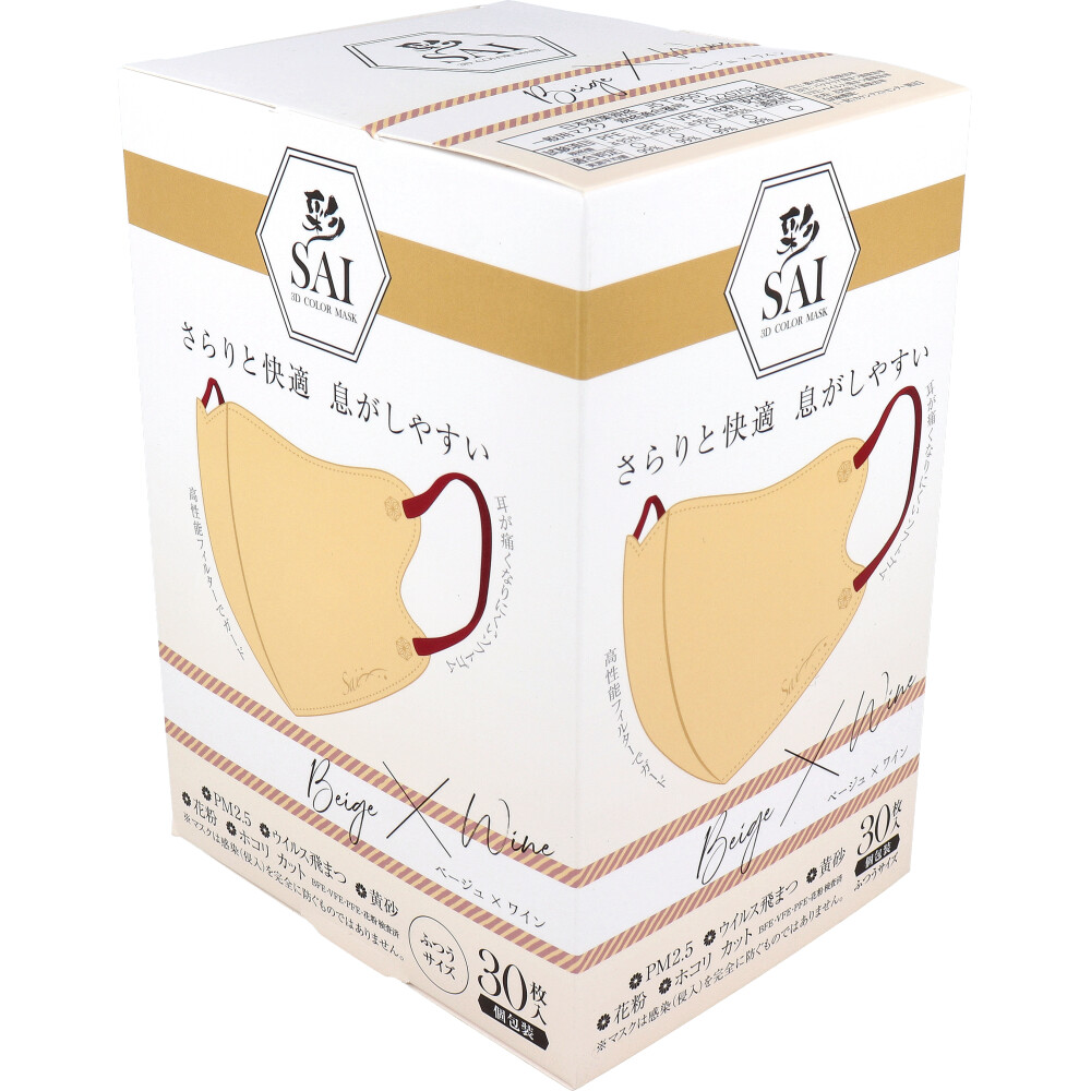 彩(SAI) 立体カラーマスク 個包装 ふつうサイズ ベージュ×ワイン 30枚入
