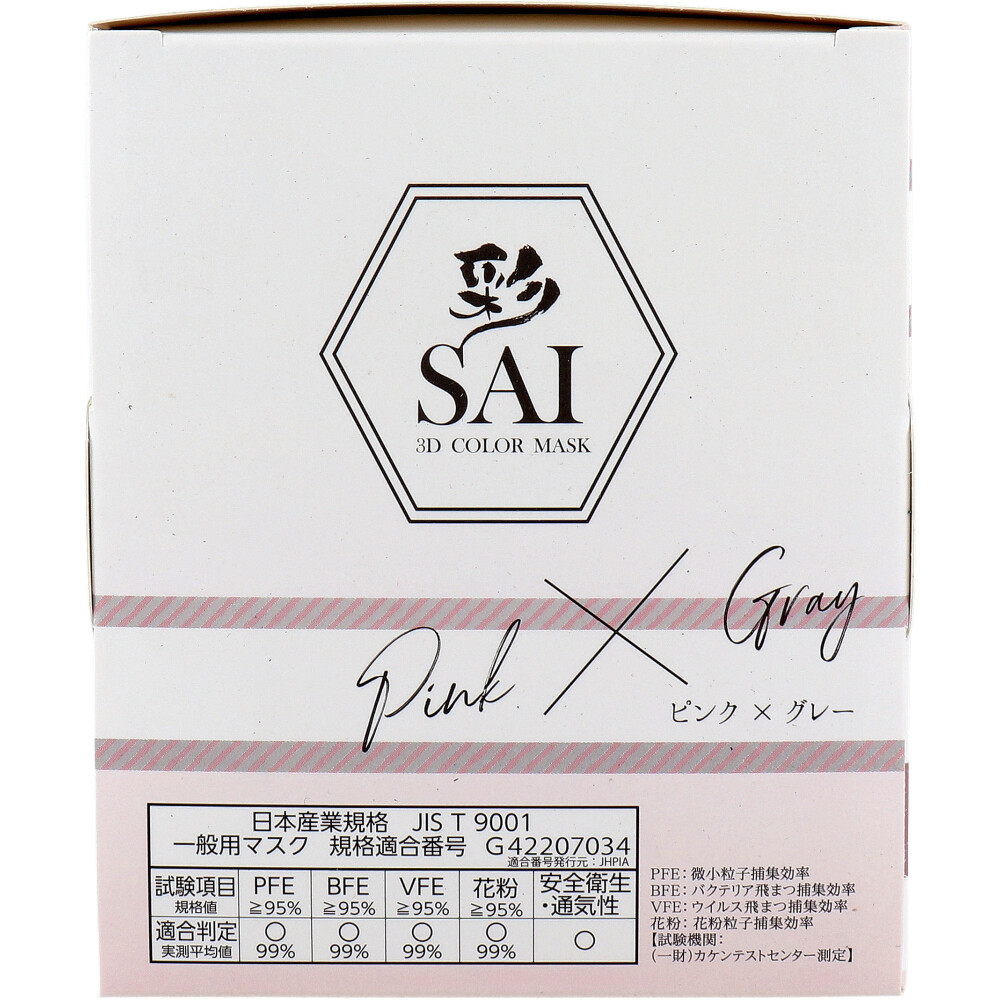 彩(SAI) 立体カラーマスク 個包装 ふつうサイズ ピンク×グレー 30枚入