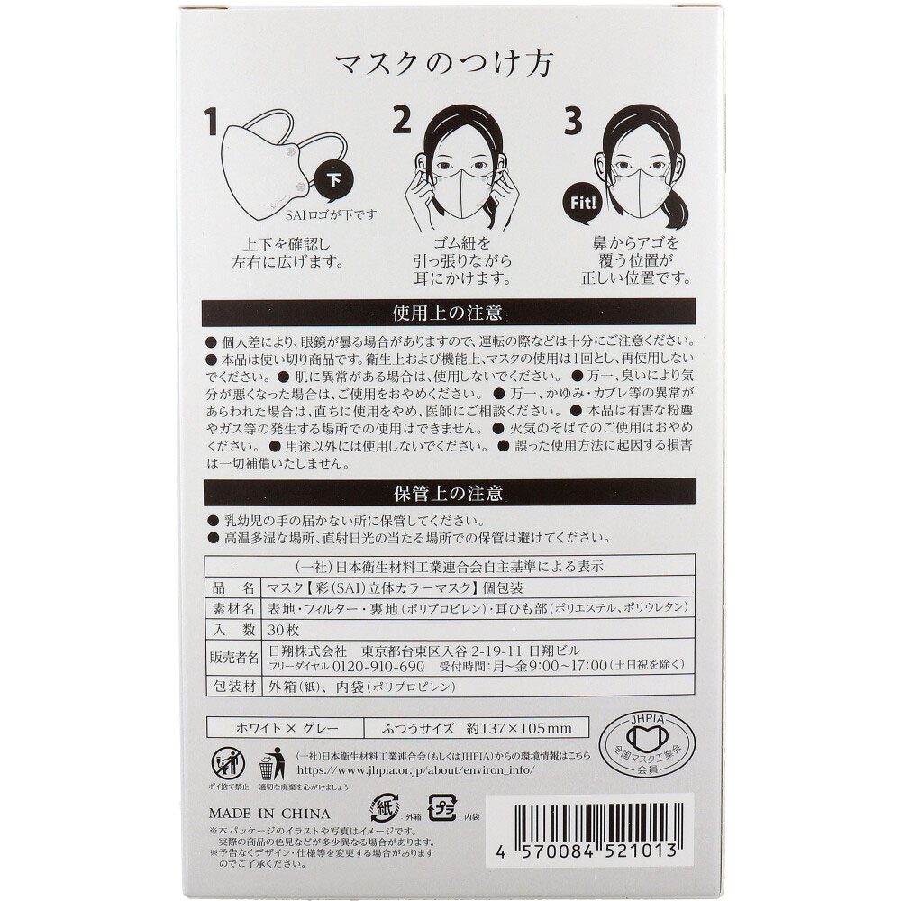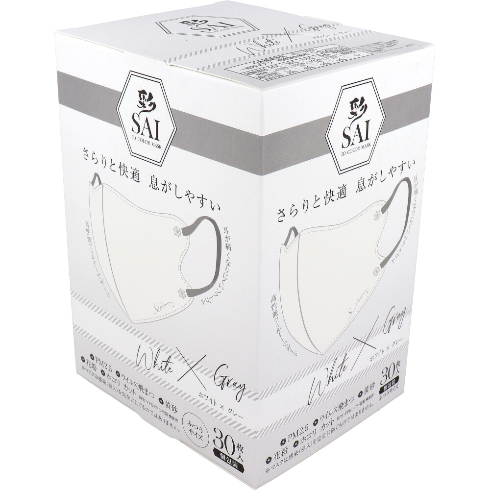 彩(SAI) 立体カラーマスク 個包装 ふつうサイズ ホワイト×グレー 30枚入