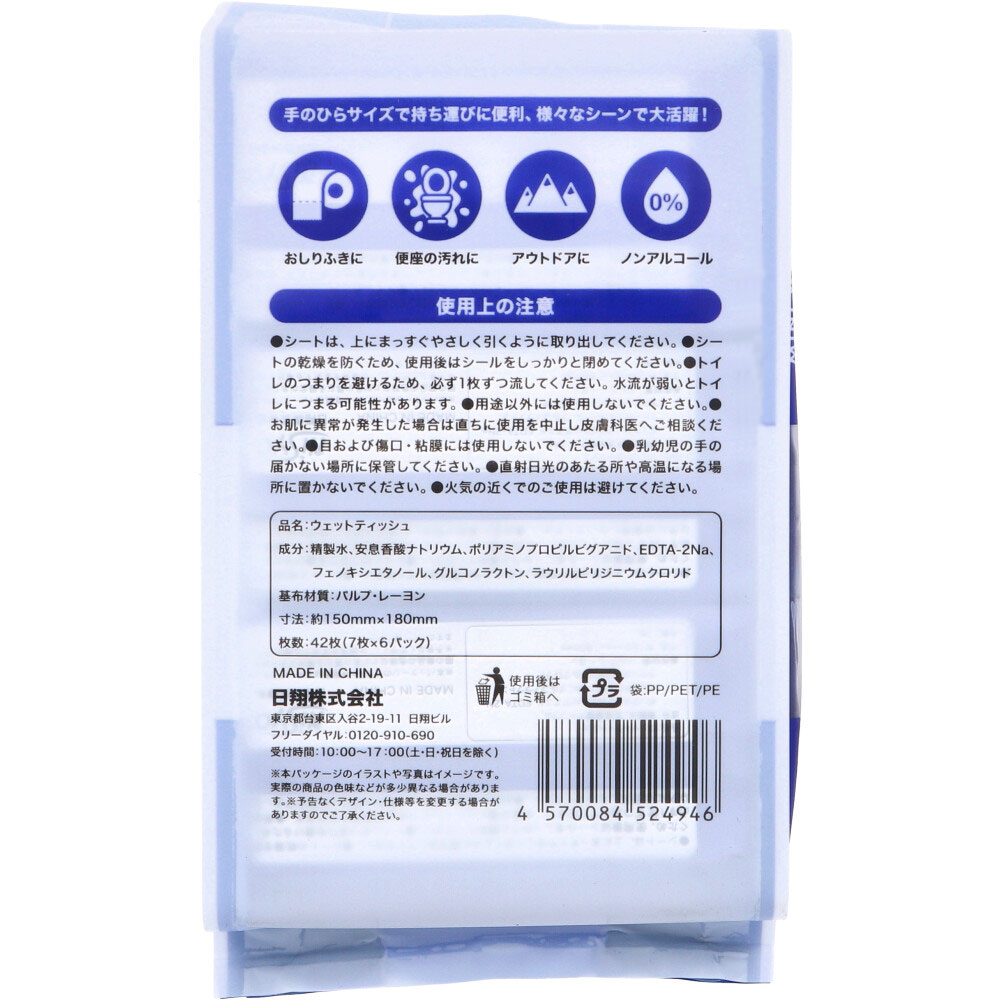 トイレに流せる ミニウェットティッシュ 7枚入×6パック