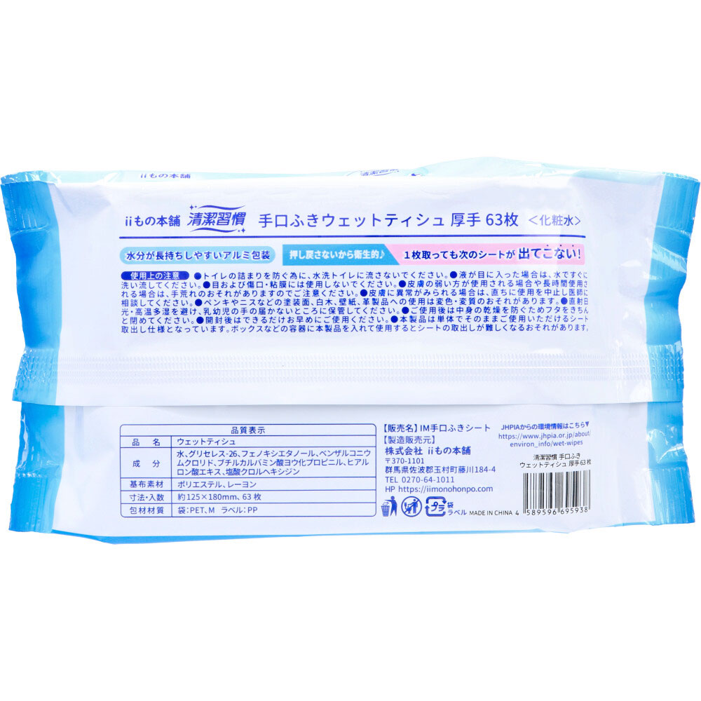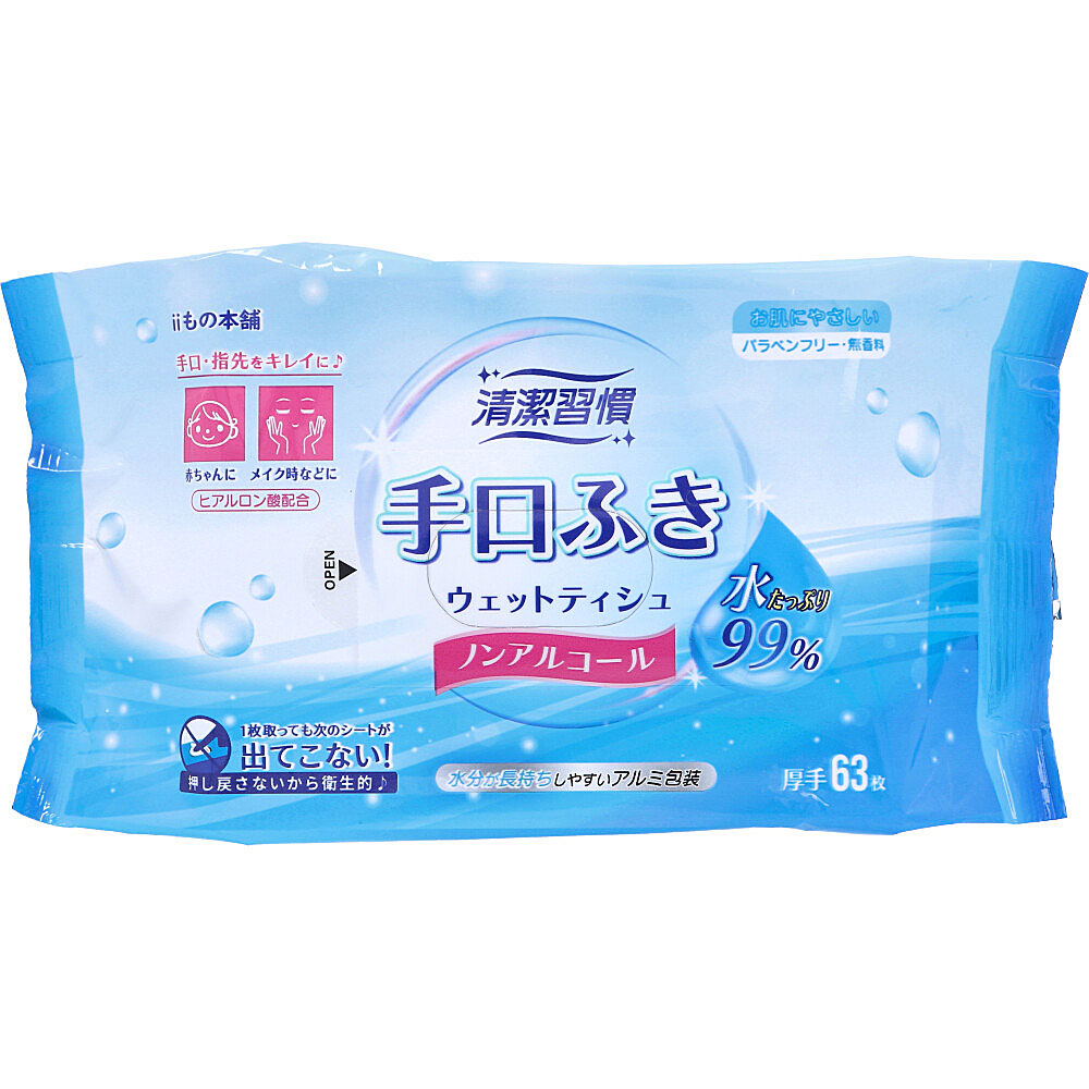 清潔習慣 手口ふき ウェットティシュ 厚手 63枚入