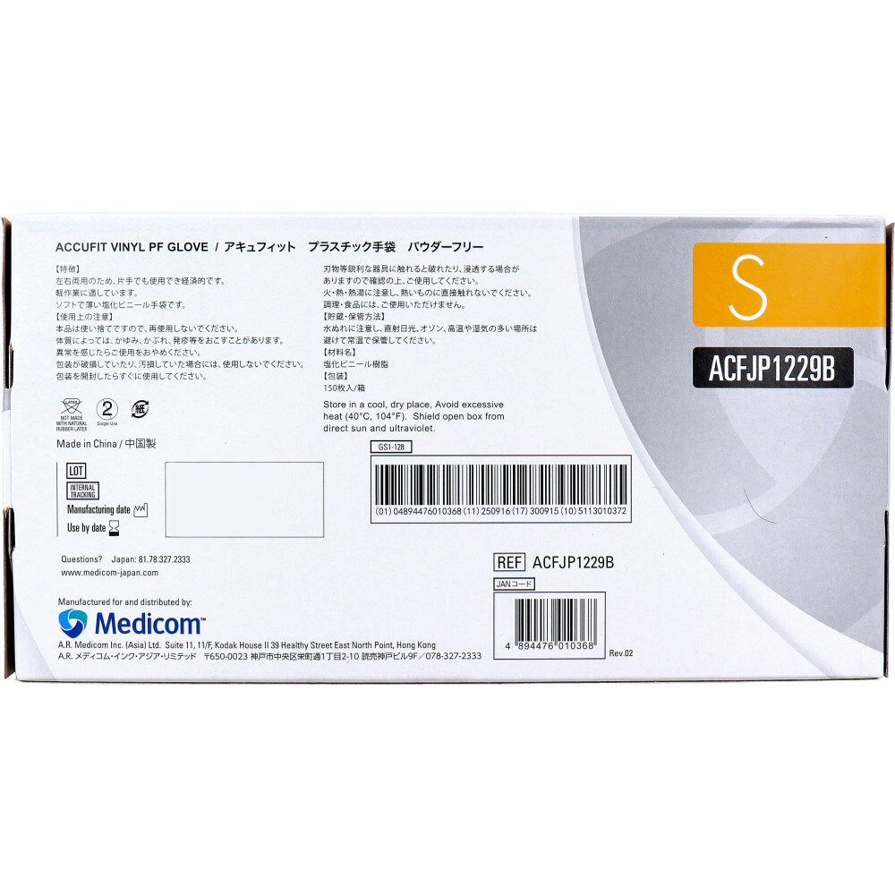【業務用】アキュフィット プラスチック手袋 パウダーフリー クリアー S 150枚入