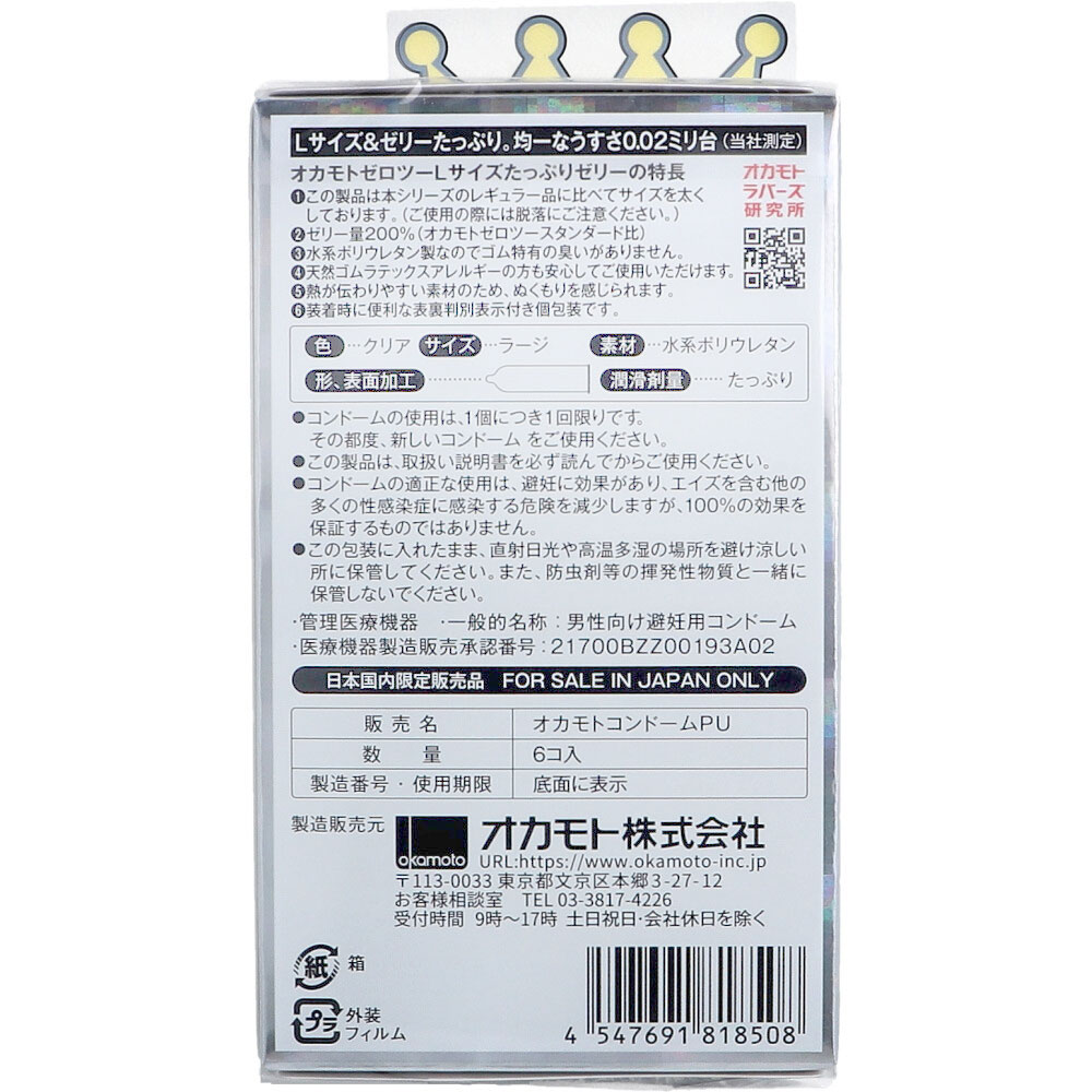 オカモトゼロツー たっぷりゼリー 0.02 コンドーム Lサイズ 6個入