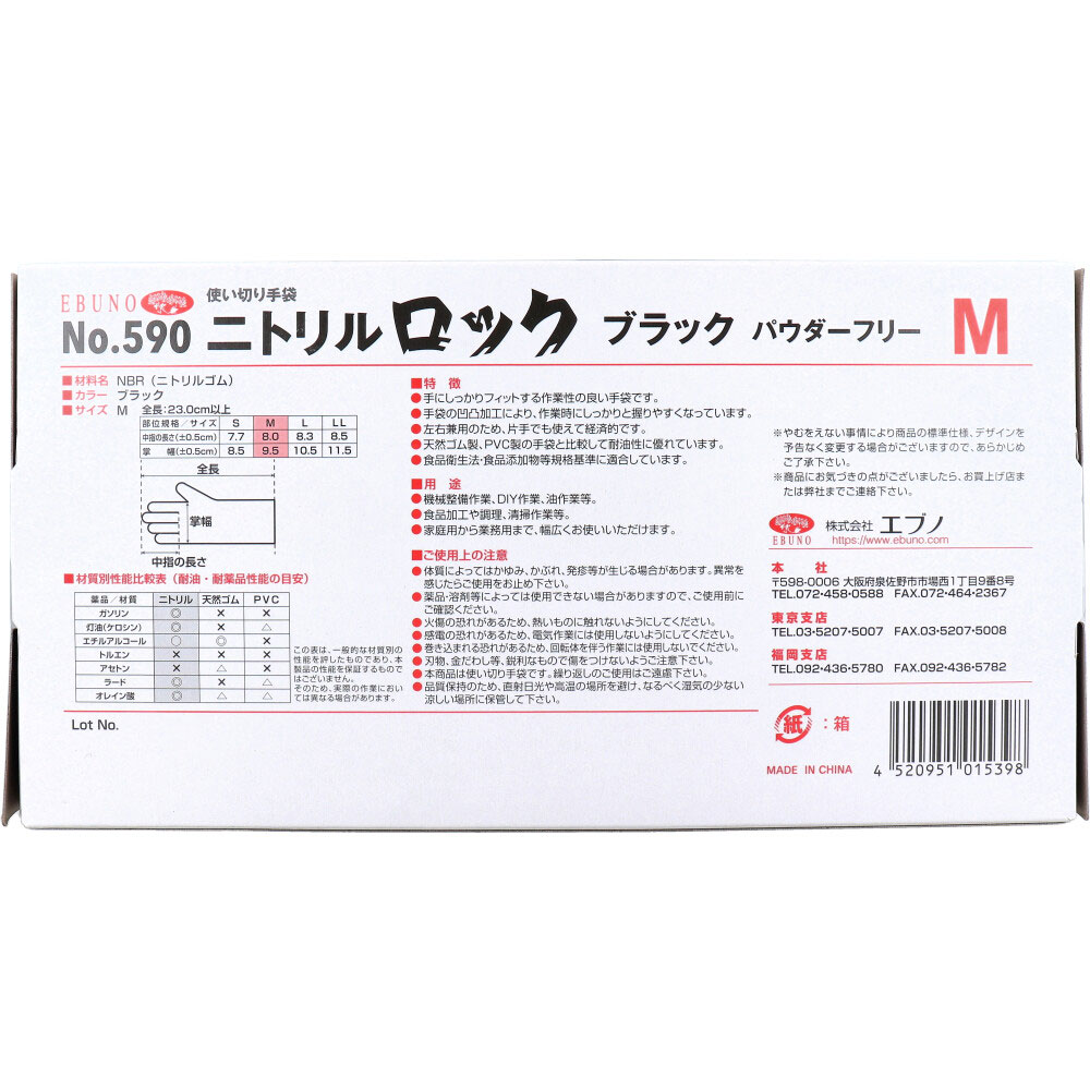 [2月26日まで特価]【業務用】No.590 使い切り手袋 ニトリルロック ブラック パウダーフリー 左右兼用 M 50枚入
