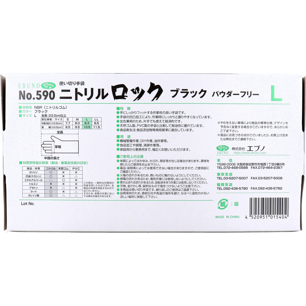 [2月26日まで特価]【業務用】No.590 使い切り手袋 ニトリルロック ブラック パウダーフリー 左右兼用 L 50枚入