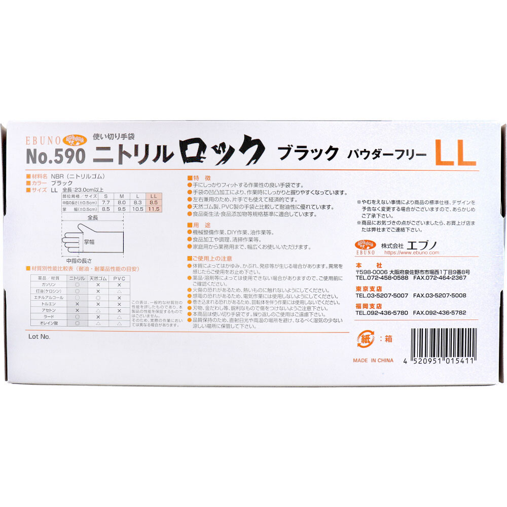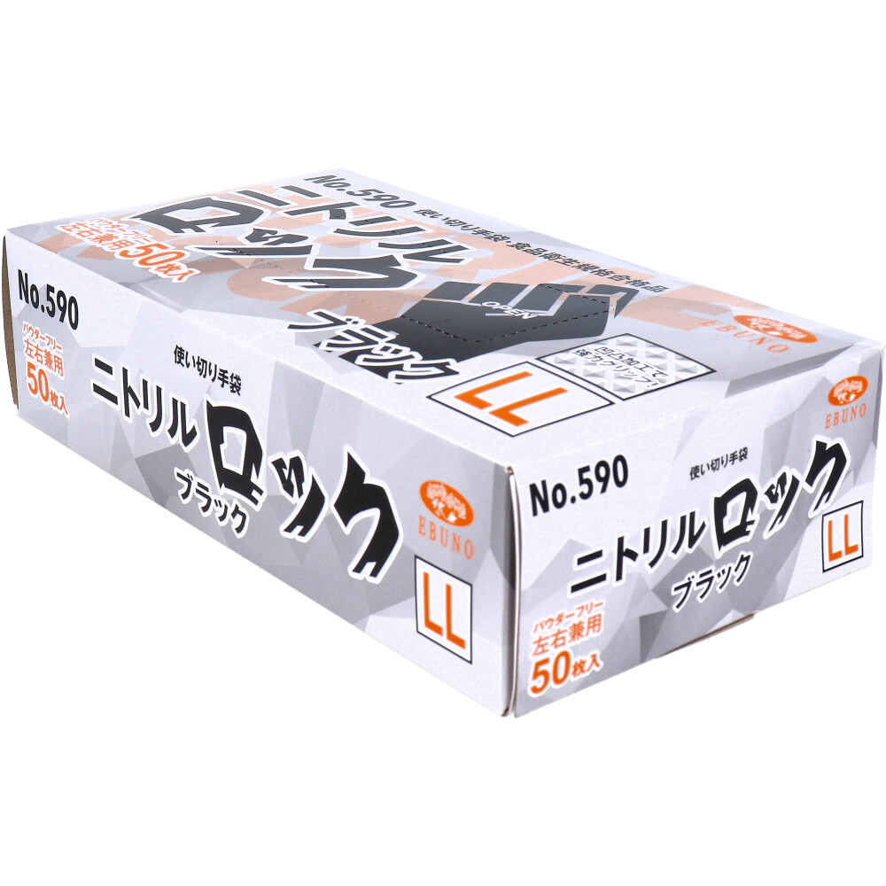 [2月26日まで特価]【業務用】No.590 使い切り手袋 ニトリルロック ブラック パウダーフリー 左右兼用 LL 50枚入