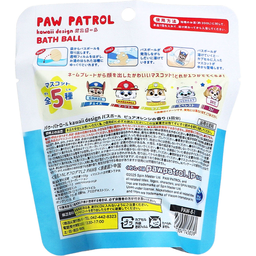 パウ・パトロール kawaii design バスボール ピュアオレンジの香り 55g 1回分