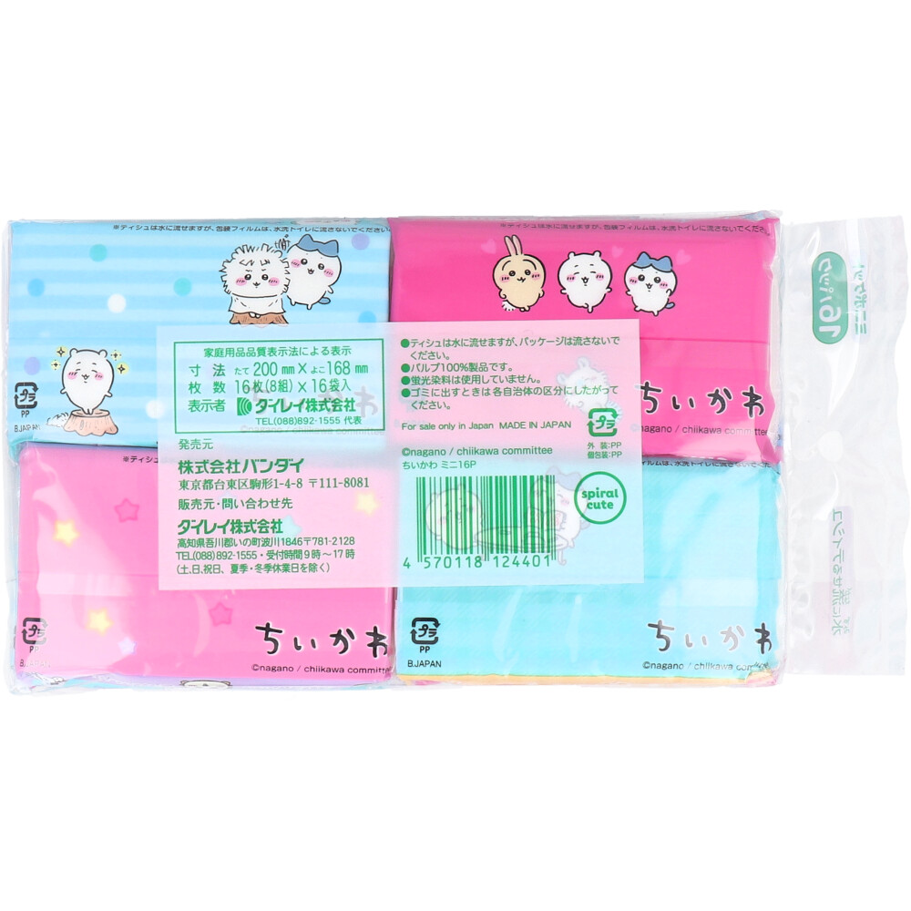 ちいかわ 水に流せるミニポケットティシュ 16枚(8組)×16個入