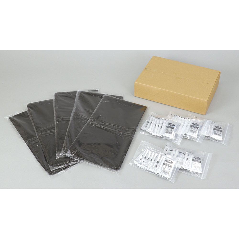 | 素材 | 【セット内容】 凝固剤8g×50、ポリ袋45L(10枚入)黒×5 【材質】 凝固剤:高吸水性樹脂、袋:ポリエチレン 【使い方】 便座に汚物袋をかけ、排泄後、凝固剤をふりかけます。 袋を取り出し、口を二重に結んで袋ごと自治体の条例に従って廃棄してください。 |