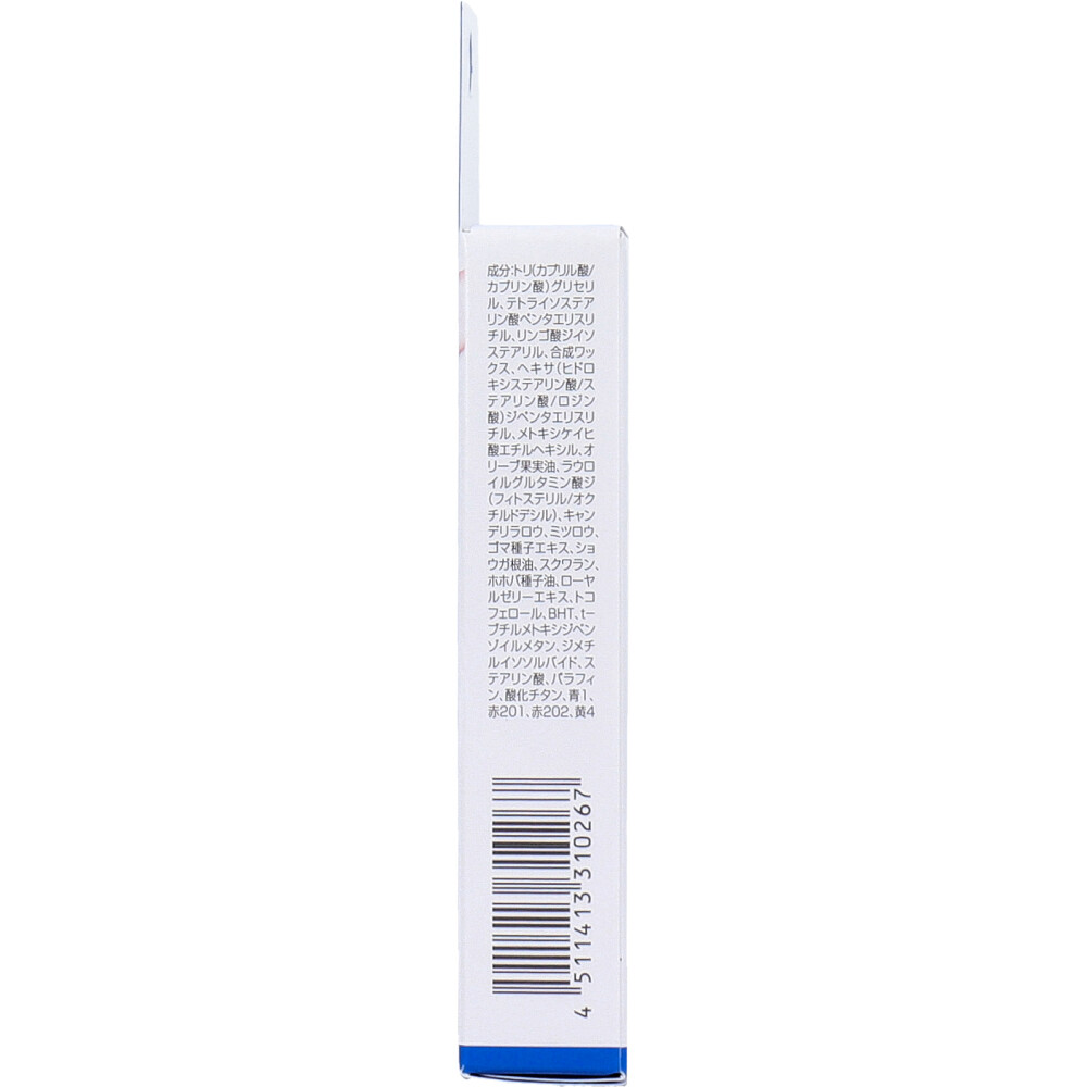 | 注意事項 | 【ご使用上の注意】 ・唇に合わないとき、即ち次のような場合には、使用を中止してください。そのまま使用を続けますと、症状を悪化させることがありますので、皮膚科専門医等にご相談されることをおすすめします。 (1)使用中、赤み、はれ、かゆみ、刺激等の異常があらわれた場合。 (2)使用した唇に、直射日光があたって上記のような症状があらわれた場合。 ・傷やはれもの、湿疹等、異常のある部位には使用しないでください。 ・スティックを出しすぎると折れる場合がありますので、注意してください。 ・SPF・PA表示は国際的に定められた基準に則り測定した値です。 ★保管上の注意 ・使用後は必ずしっかり蓋をしめてください。 ・直射日光のあたる場所、極端に高温多湿の場所には保管しないでください。 ・乳幼児の手の届かない所に保管してください。 |