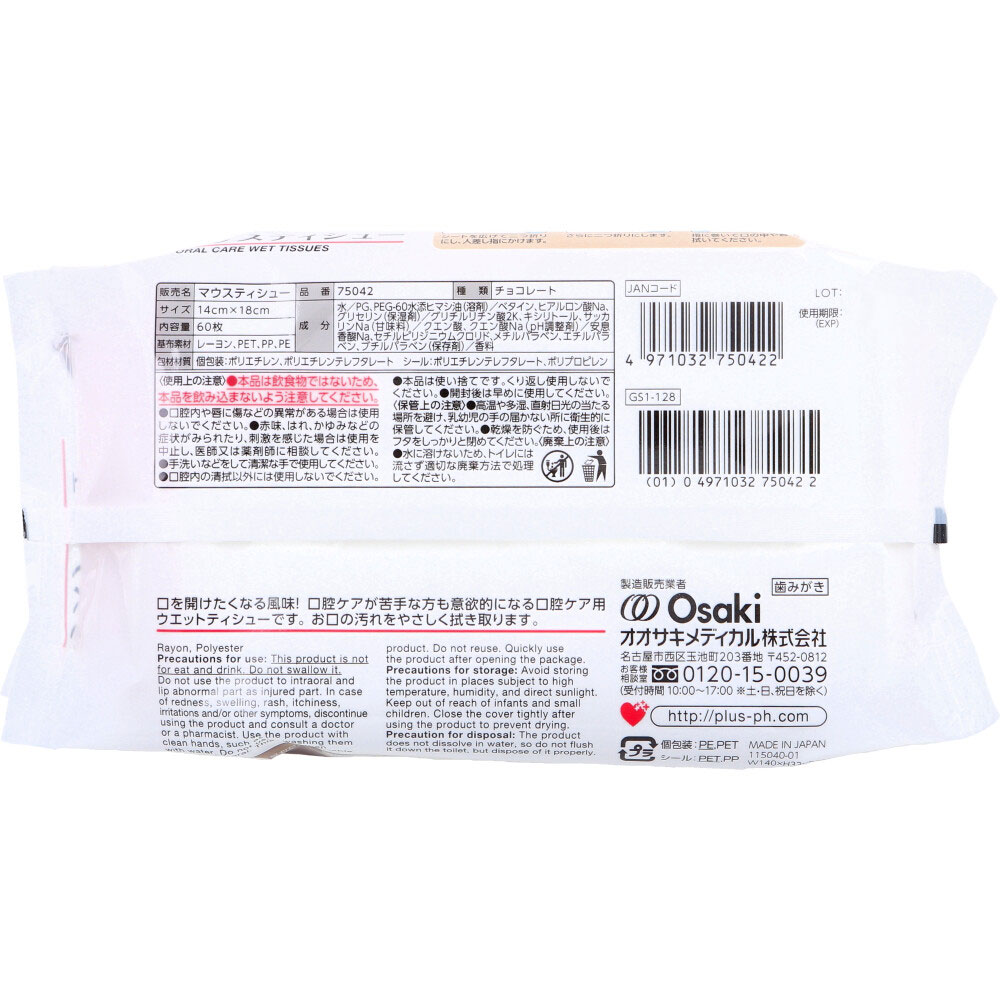 プラスハート 口腔ケア用ウエットシート マウスティシュー チョコレート風味 60枚入