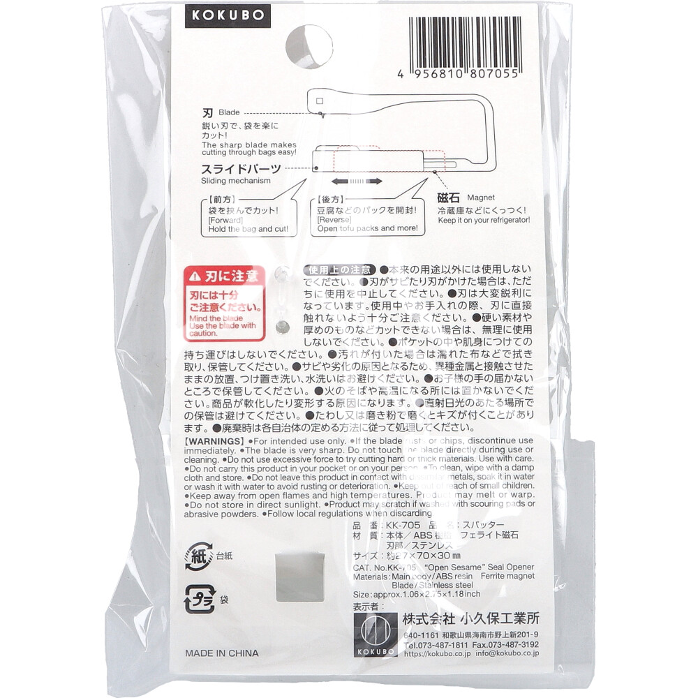 ●刃:鋭い刃で、袋を楽にカット!