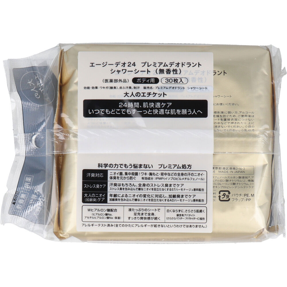 エージーデオ24 プレミアムデオドラント シャワーシート ボディ用 無香性 30枚入