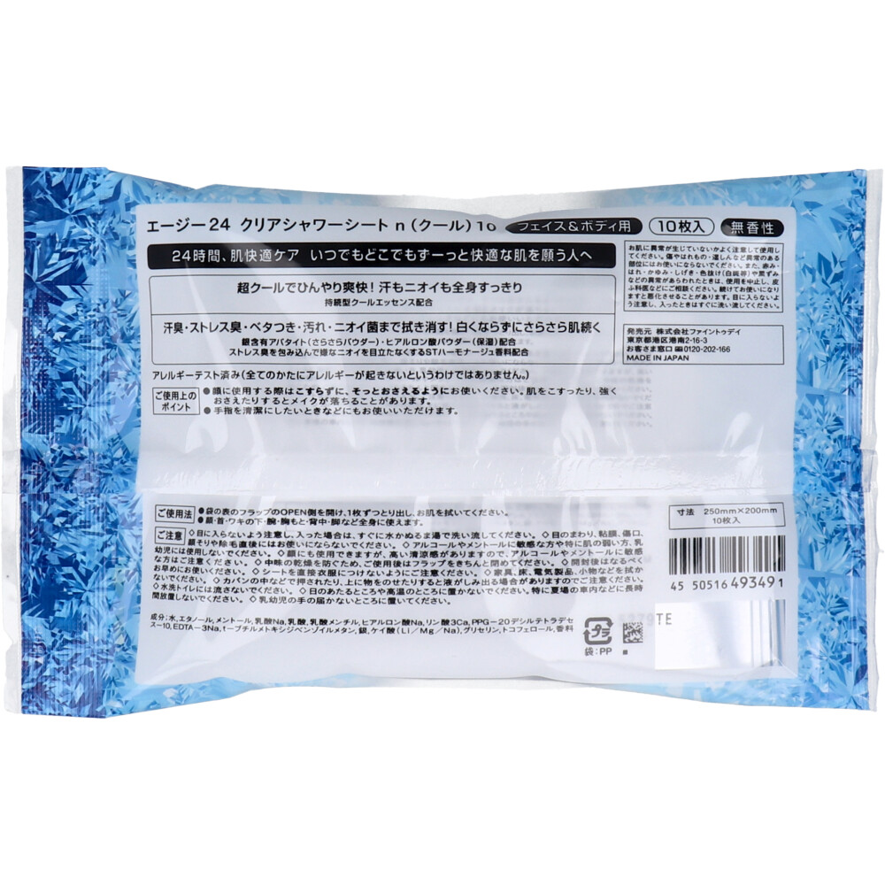 エージー24 クリアシャワーシート n フェイス&ボディ用 クール 無香性 10枚入