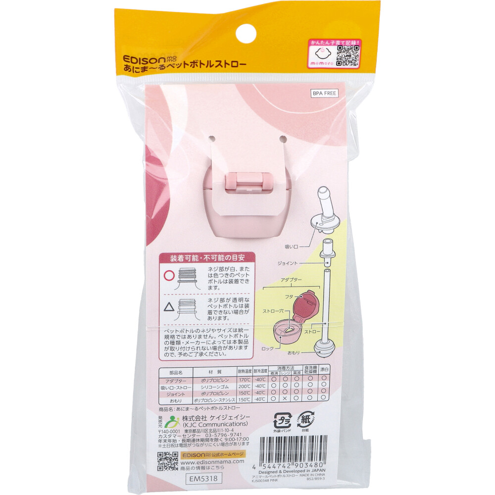 エジソンママ あにま~るペットボトルストロー 350-500mLペットボトル専用 ピンク