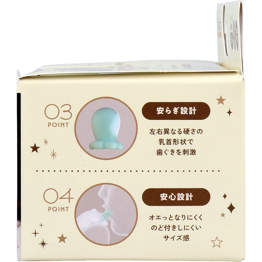 ●安らぎ設計:左右異なる硬さの乳首形状で歯ぐきを刺激。
