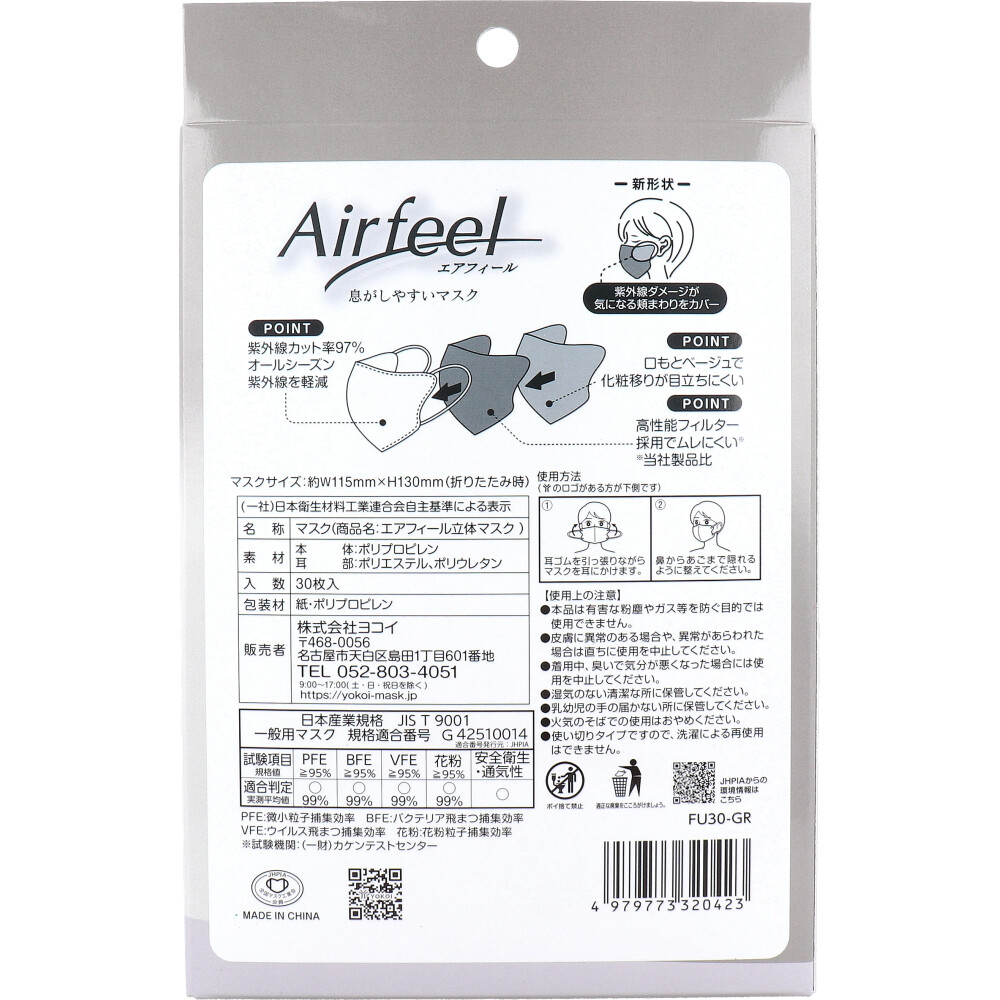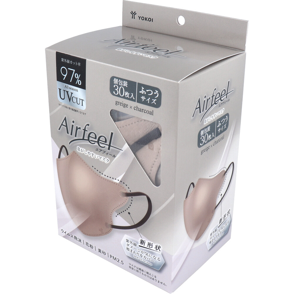 エアフィール立体マスク ふつうサイズ グレージュ×チャコール 30枚入