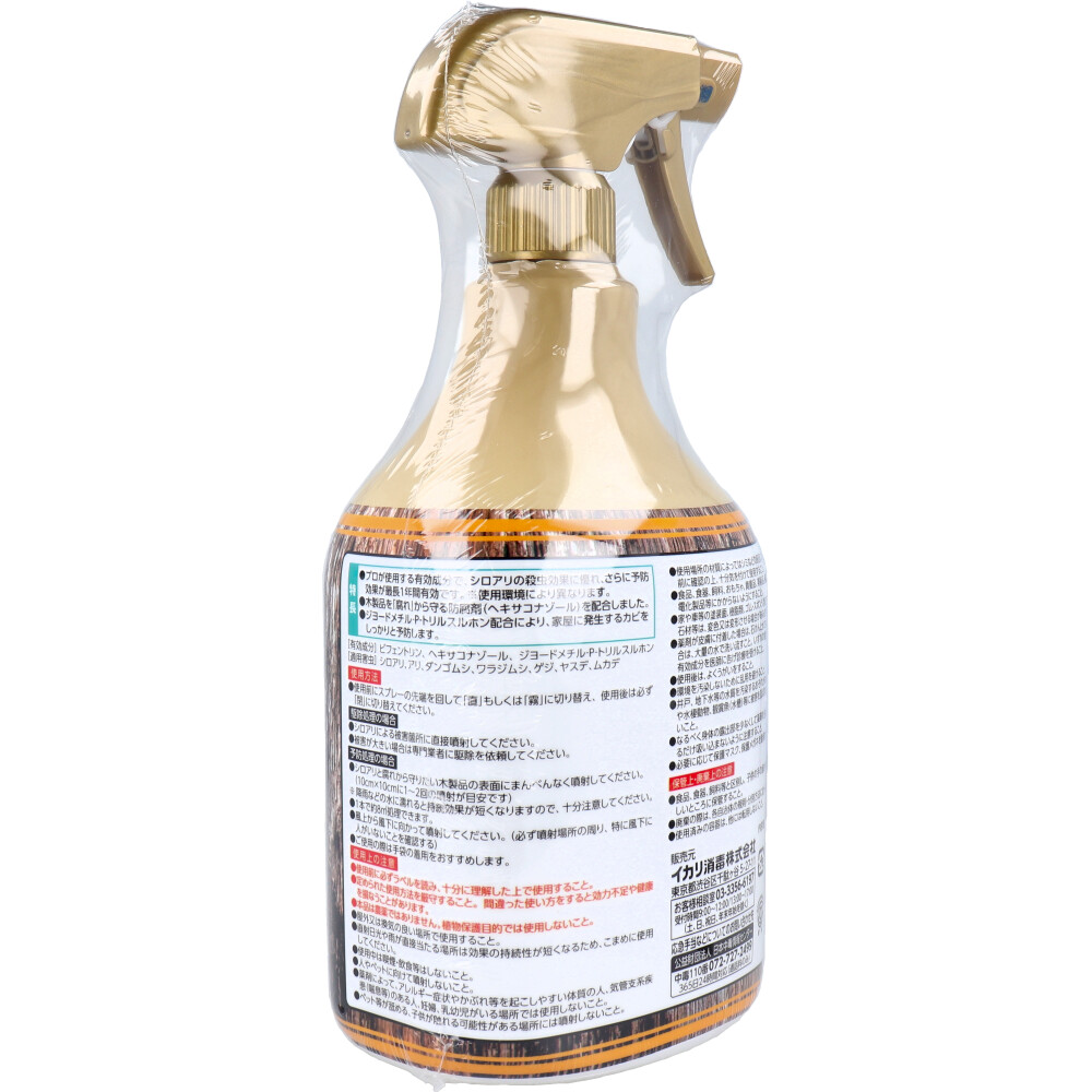 | 注意事項 | 【使用上の注意】 ・使用前に必ずラベルを読み、十分に理解した上で使用すること。 ・定められた使用方法を厳守すること。間違った使い方をすると効力不足や健康を損なうことがあります。 ・本品は農薬ではありません。植物保護目的では使用しないこと。 ・屋外又は換気の良い場所で使用すること。 ・直射日光や雨が直接当たる場所は効果の持続性が短くなるため、こまめに使用してください。 ・使用中は喫煙・飲食等はしないこと。 ・人やペットに向けて噴射しないこと。 ・薬剤によって、アレルギー症状やかぶれ等を起こしやすい体質の人、気管支系疾患(喘息等)のある人、妊婦、乳幼児がいる場所では使用しないこと。 ・ペット等が舐める、子供が触れる可能性がある場所には噴射しないこと。 ・使用場所の材質によってはシミなどの原因になるので、目立たない場所で事前に確認の上、十分気を付けて使用すること。 ・食品、食器、飼料、おもちゃ、貴重品、美術品、楽器、寝具、衣類、押入、タンス、電化製品等にかからないようにすること。 ・家や車等の塗装面、樹脂類、ゴム・スポンジ類、床(フローリング等)、白木、漆喰、石材等は、変色又は変形させる場合があるので、かからないようにすること。 ・薬剤が皮膚に付着した場合は、石けんと水でよく洗い流すこと。眼に入った場合は、大量の水で洗い流すこと。いずれの場合も異常があれば直ちに本品の有効成分を医師に告げ診療を受けること。 ・使用後は、よくうがいをすること。 ・環境を汚染しないために乱用を避けること。 ・井戸、地下水等の水質を汚染するおそれがある場所、蜜蜂、蚕、飼育昆虫、魚や水槽動物、観賞魚(水槽)等に被害を及ぼすおそれのある場所では使用しないこと。 ・なるべく身体の露出部を少なくして薬剤を浴びないようにするとともに、できるだけ吸い込まないように注意すること。 ・必要に応じて保護マスク、保護メガネを着用すること。 ★保管上・廃棄上の注意 ・食品、食器、飼料等と区別し、子供の手の届かない、直射日光が当たらない涼しいところに保管すること。 ・廃棄の際は、各自治体の規則・分別方法に従って廃棄すること。 ・使用済みの容器は、他には転用しないこと。 |
