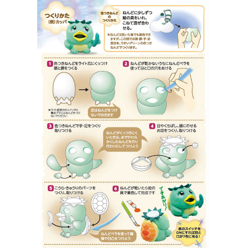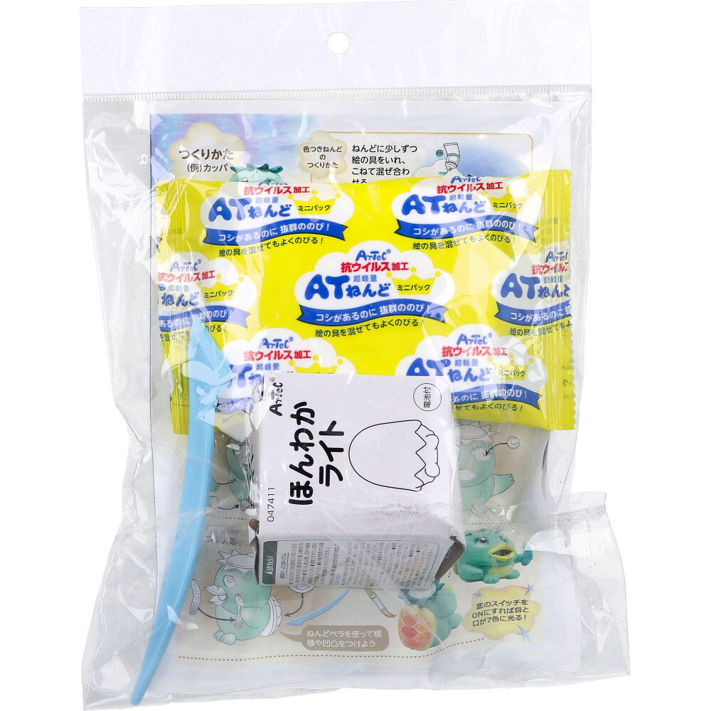 | 素材 | 【セット内容】 ・ATねんどミニパック×1 ・ほんわかライト(ボタン電池3個付)×1 ・ねんどベラ×1 【用意するもの】 水彩絵の絵の具など。 【材質】 樹脂中空体、パルプ、PVC 【サイズ】 ・ほんわかライト:51×53×58mm ・ATねんどミニパック:約80×60×20mm |