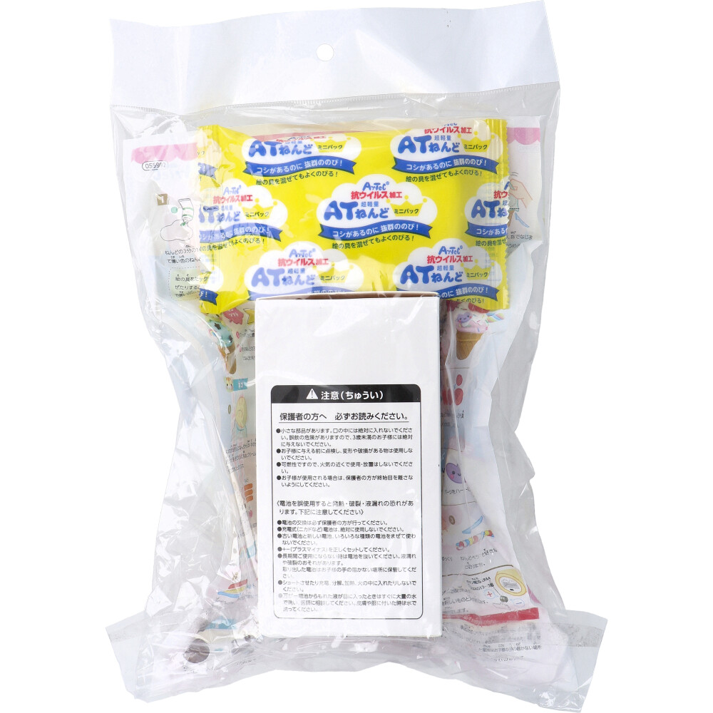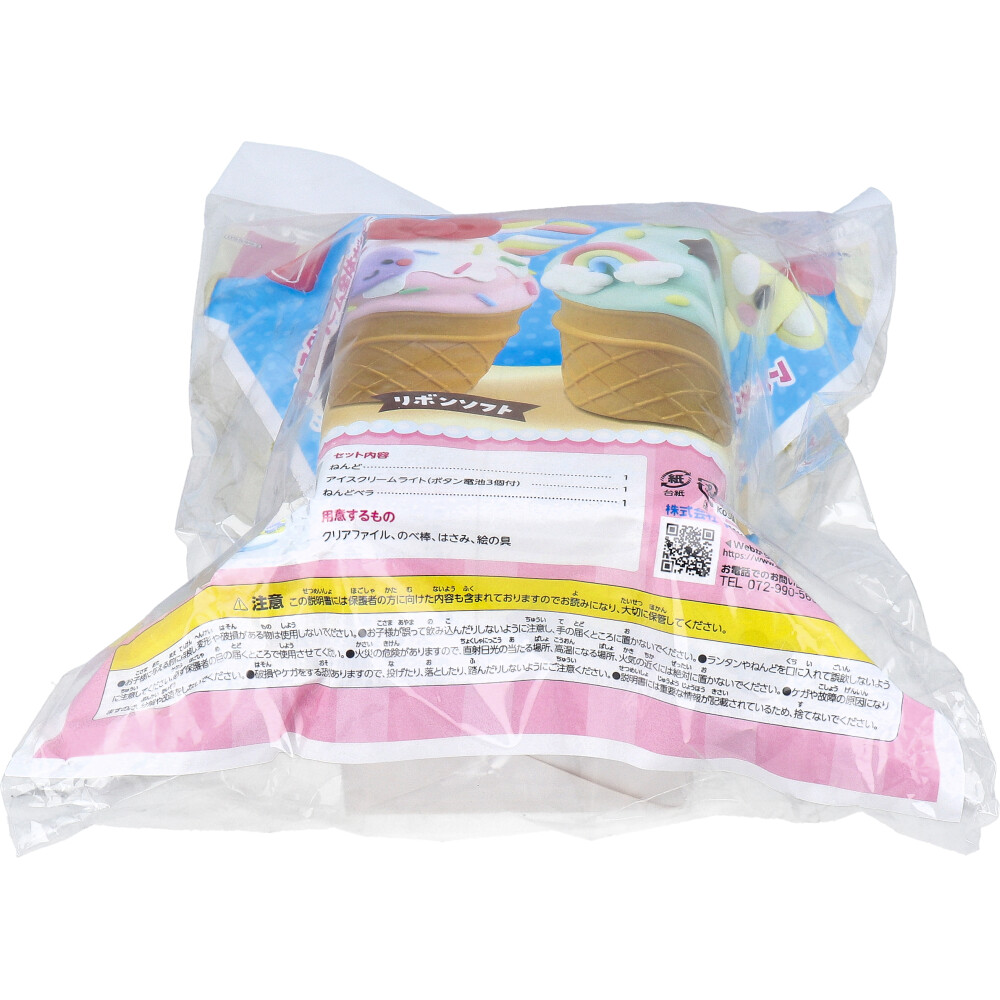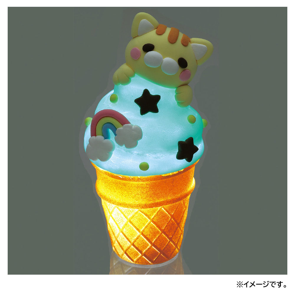 | 素材 | 【セット内容】 ・ねんど×1 ・アイスクリームライト(ボタン電池3個付) ・ねんどベラ×1 【用意するもの】 クリアファイル、のべ棒、はさみ、絵の具 【材質】 樹脂中空体、パルプ、PVC 【サイズ】 縦約140mm、幅約70mm |