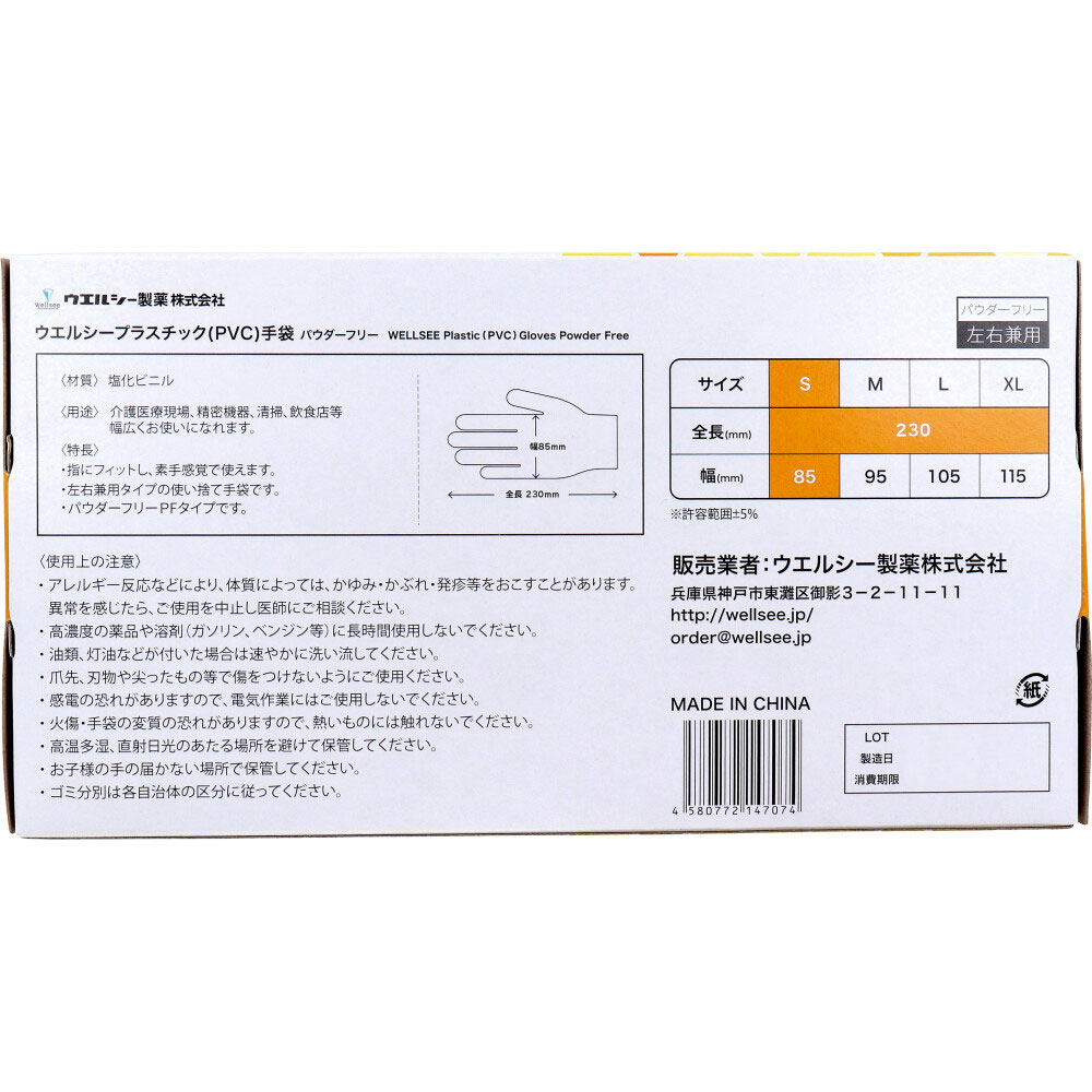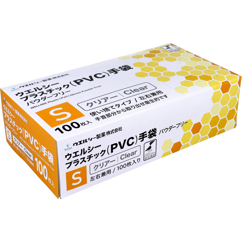 【業務用】ウエルシーPVCグローブ パウダーフリー クリアー 左右兼用 S 100枚入